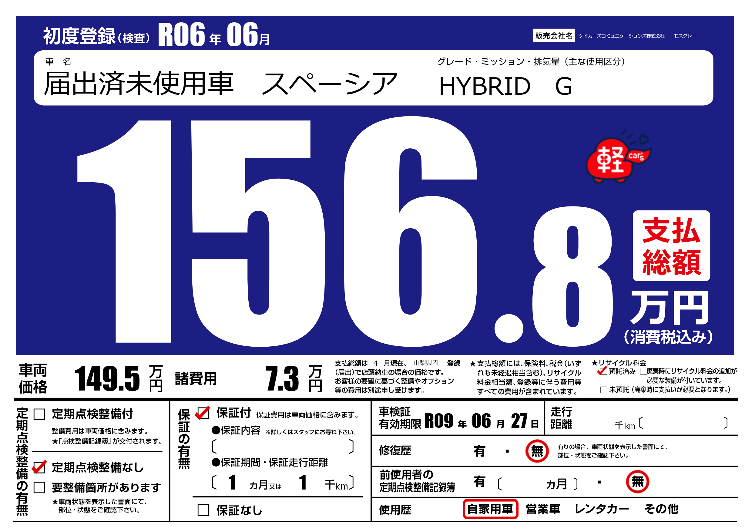 なし | 車検制限 | R09年06月27月 |