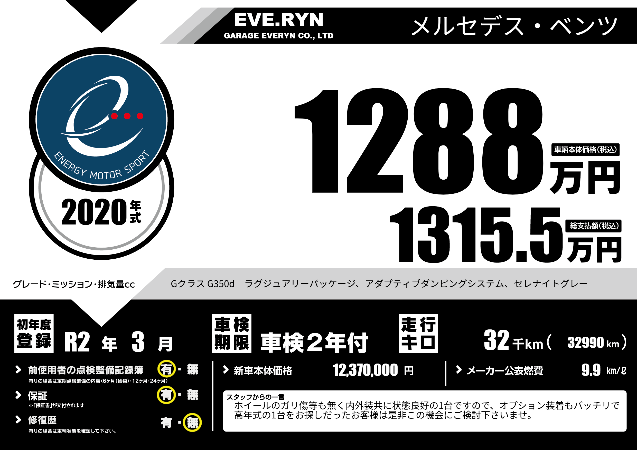 | 初年度登録 | R2年3月 | ||