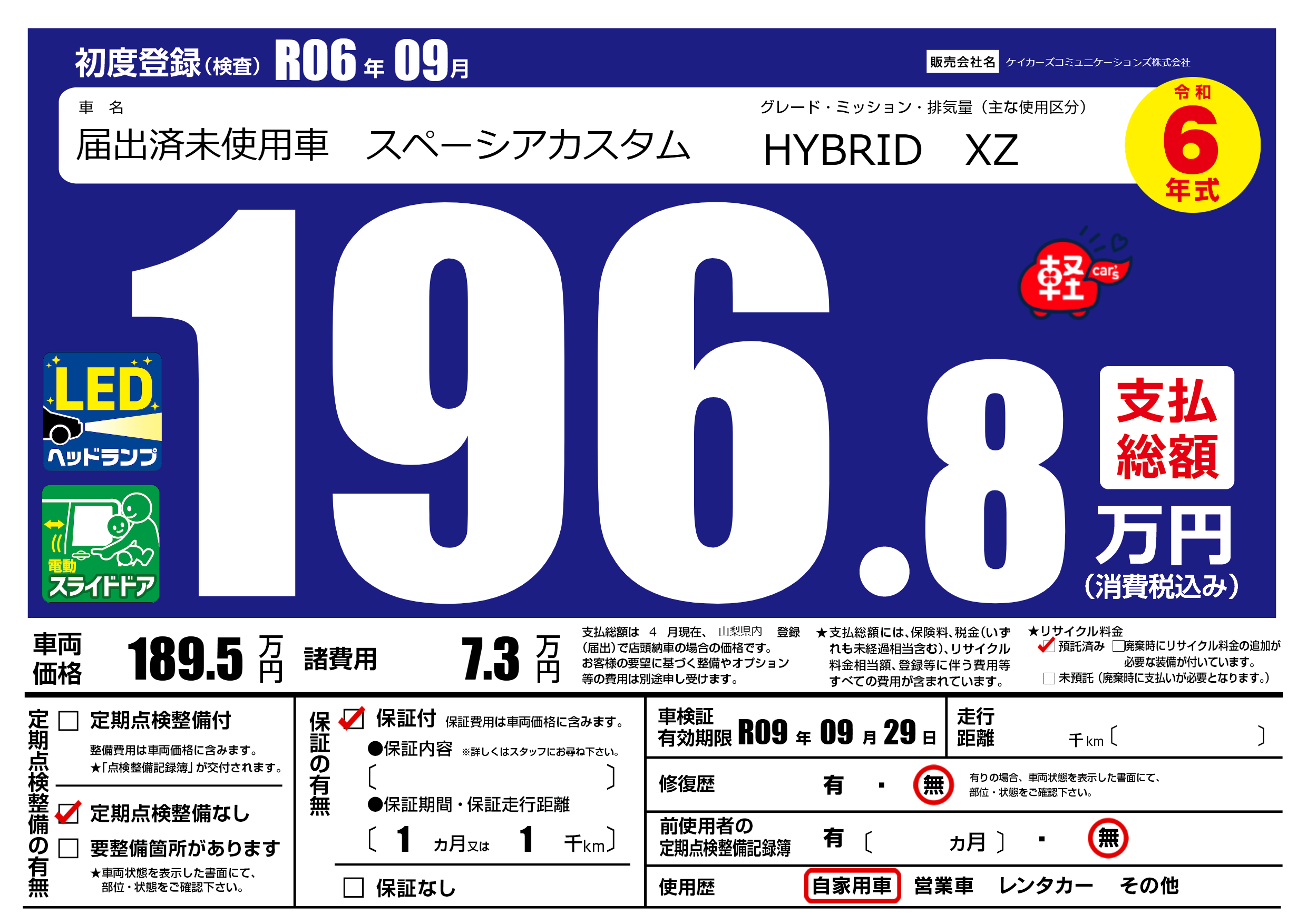 なし | 車検制限 | R09年09月29月 |