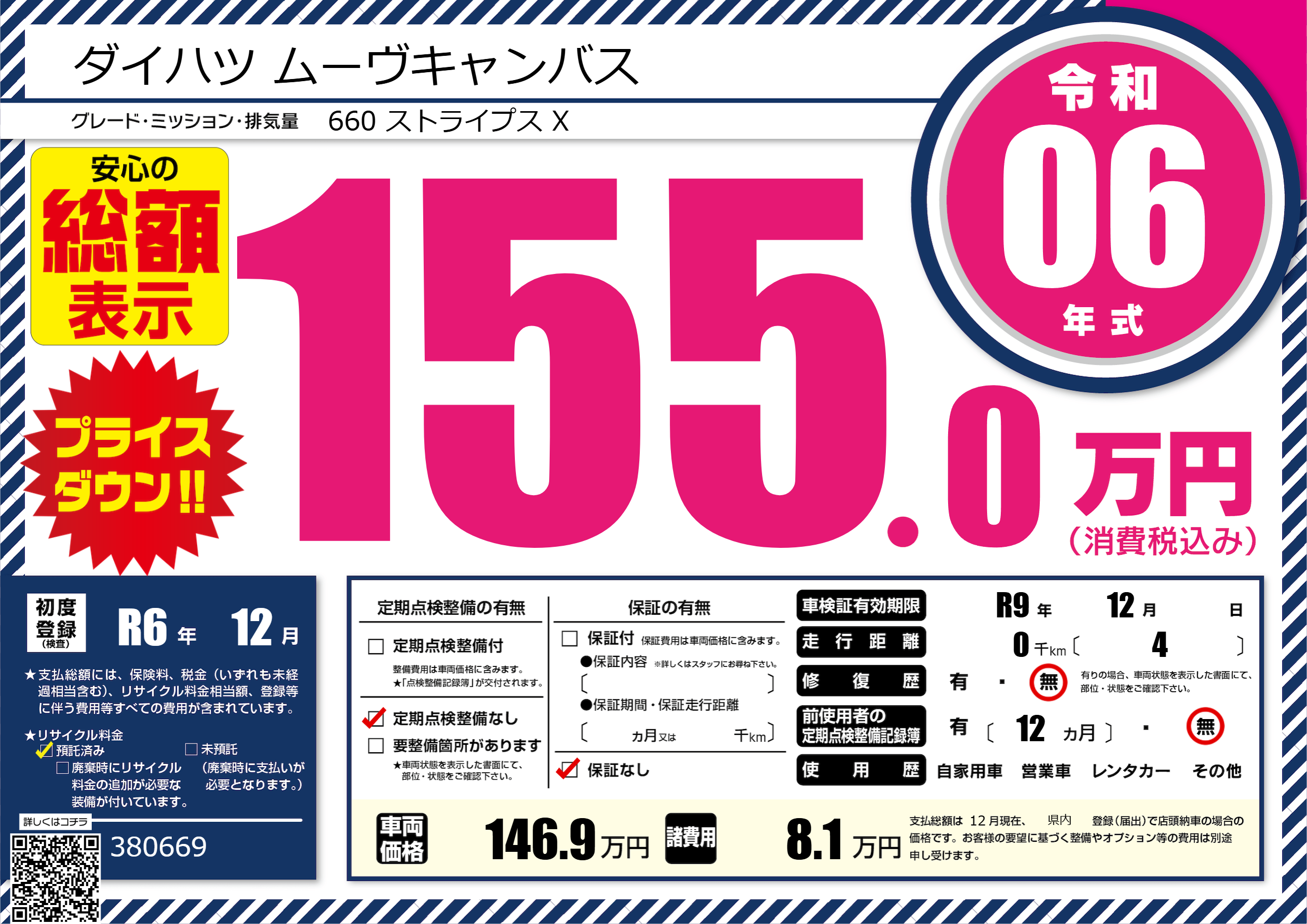 なし | 車検制限 | R9年12月---月 |