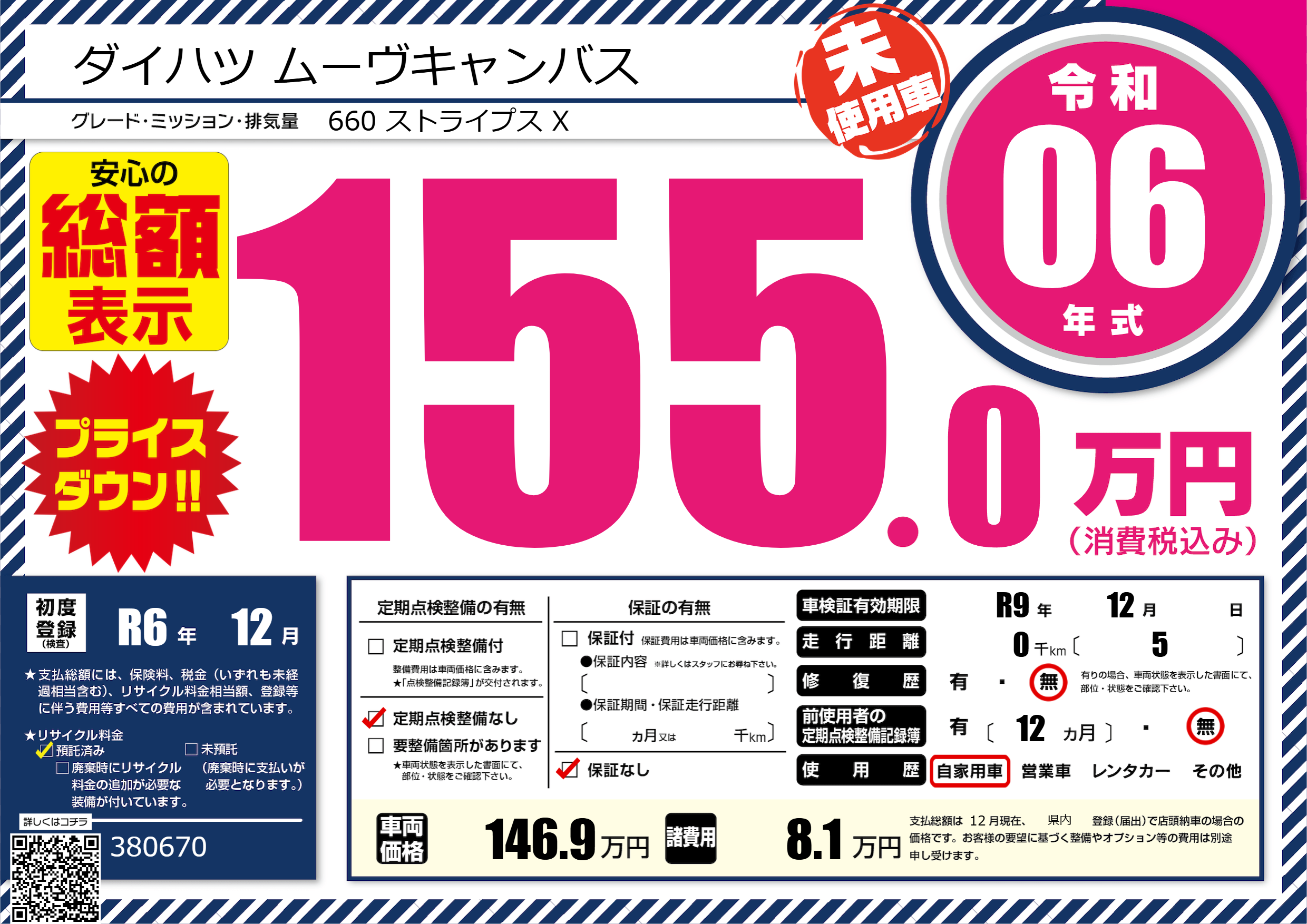 | 走行キロ | - | 初年度登録 | R6年12月 |