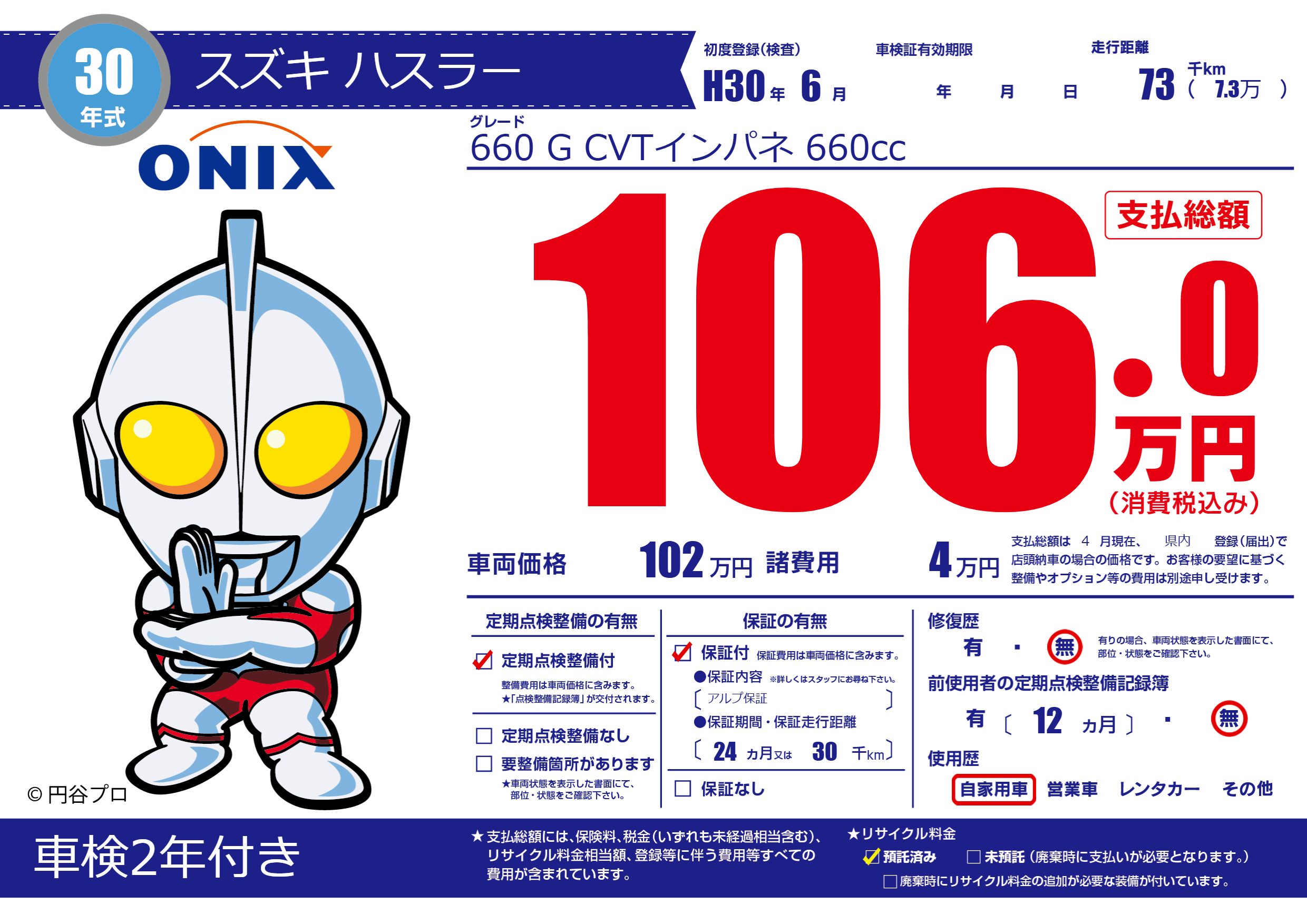 保証付き 保証内容(アルプ保証) 24ヶ月または(30)千kmまで |