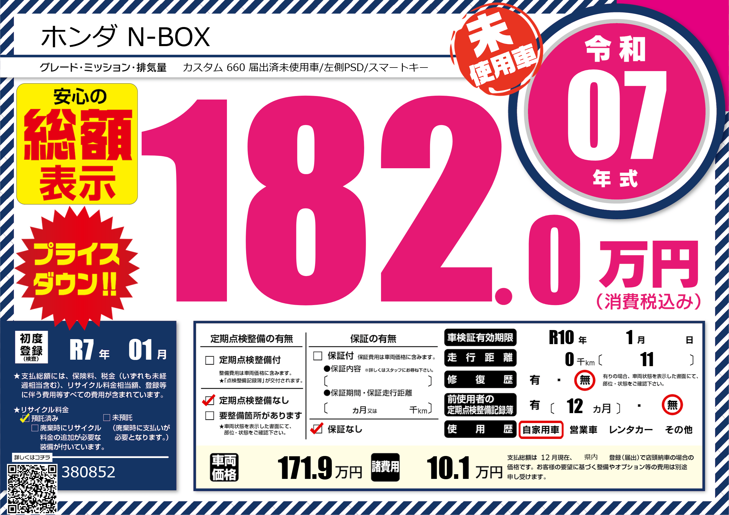 | 車検制限 | R10年 1月 - 日 | ||