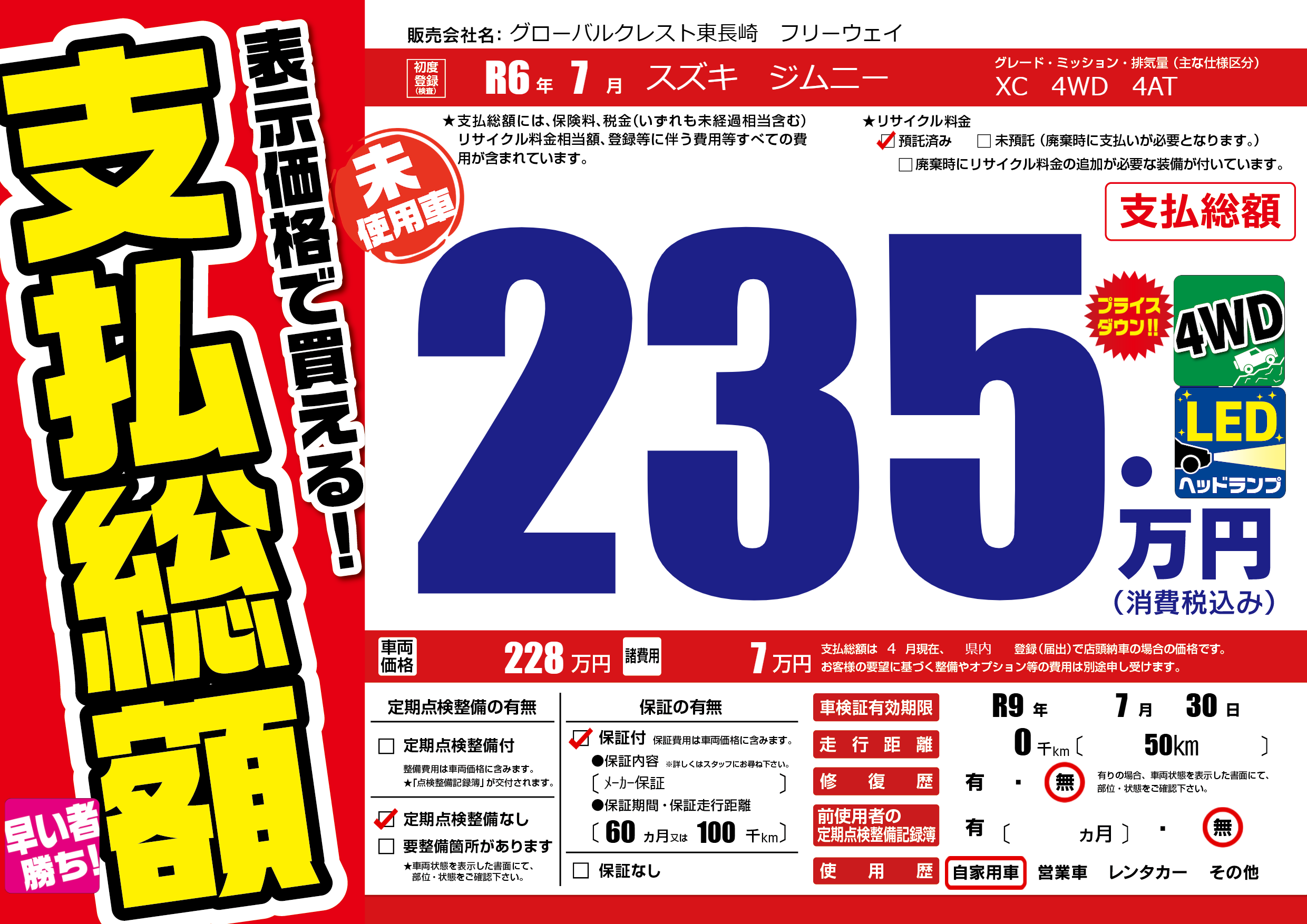 | 走行キロ | - | 初年度登録 | R6年7月 |