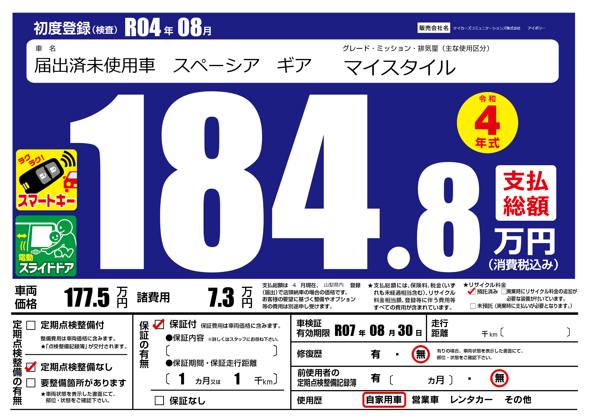 なし | 車検制限 | R07年08月30月 |