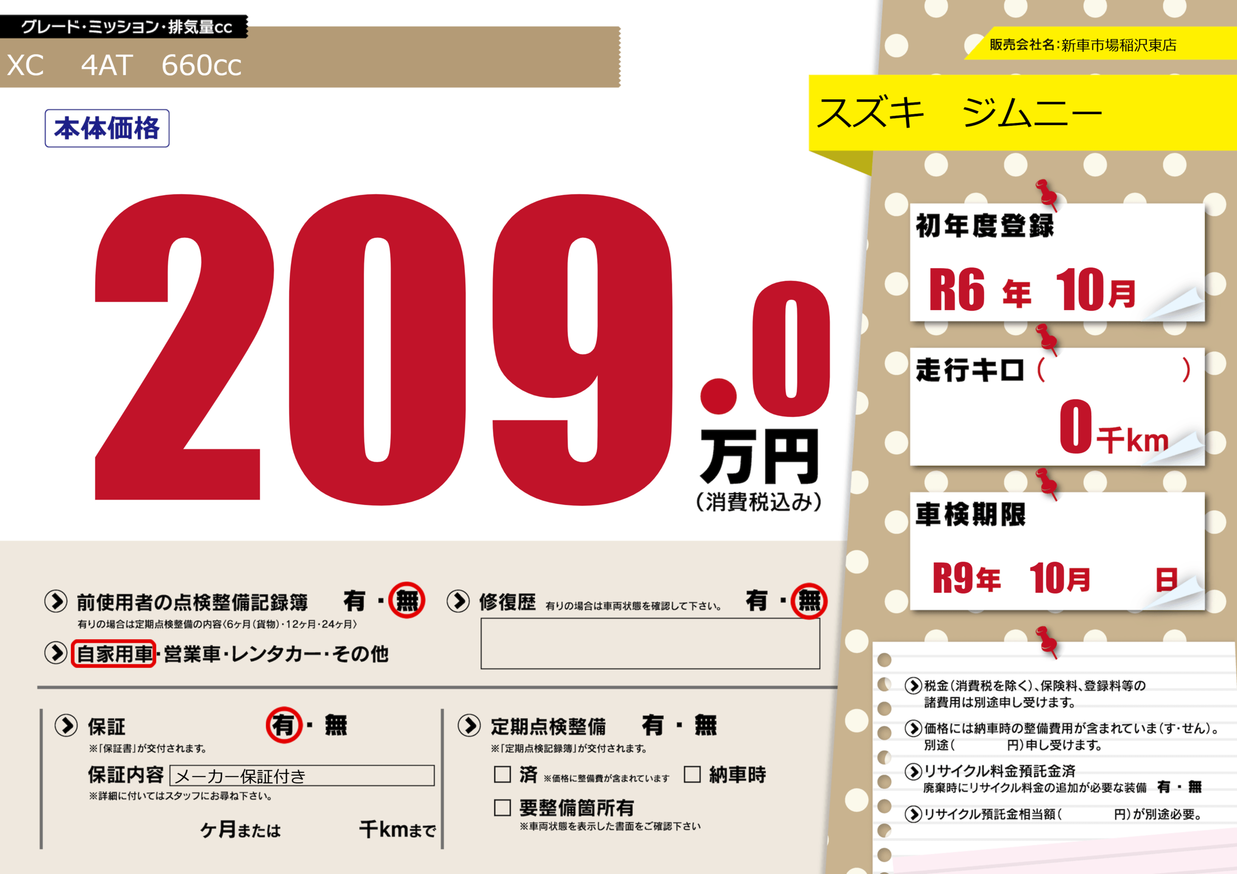 保証付き 保証内容(メーカー保証付き) ---ヶ月または()千kmまで |