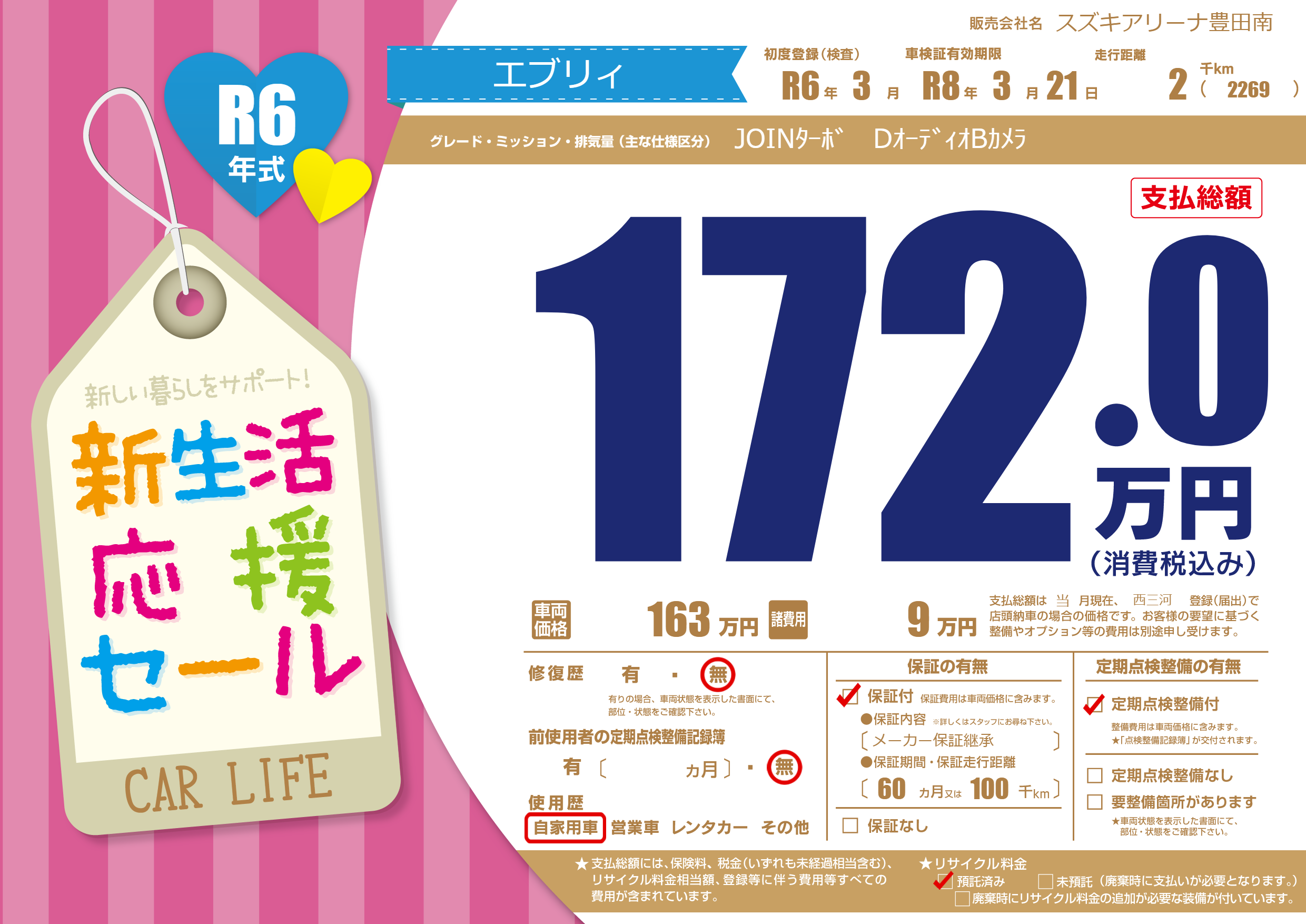 | 車名 | エブリィ | グレード ミッション 排気量 |