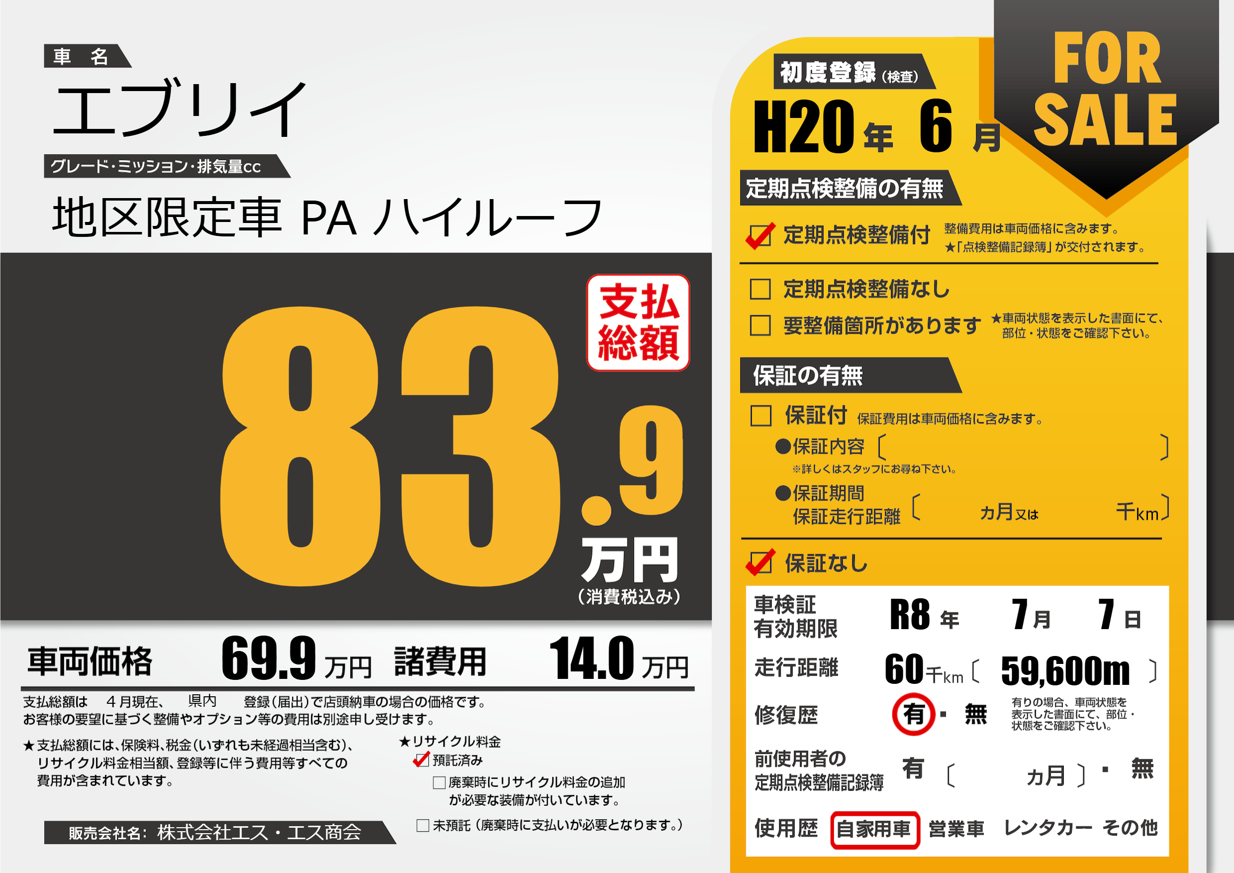 なし | 車検制限 | R8年7月7月 |