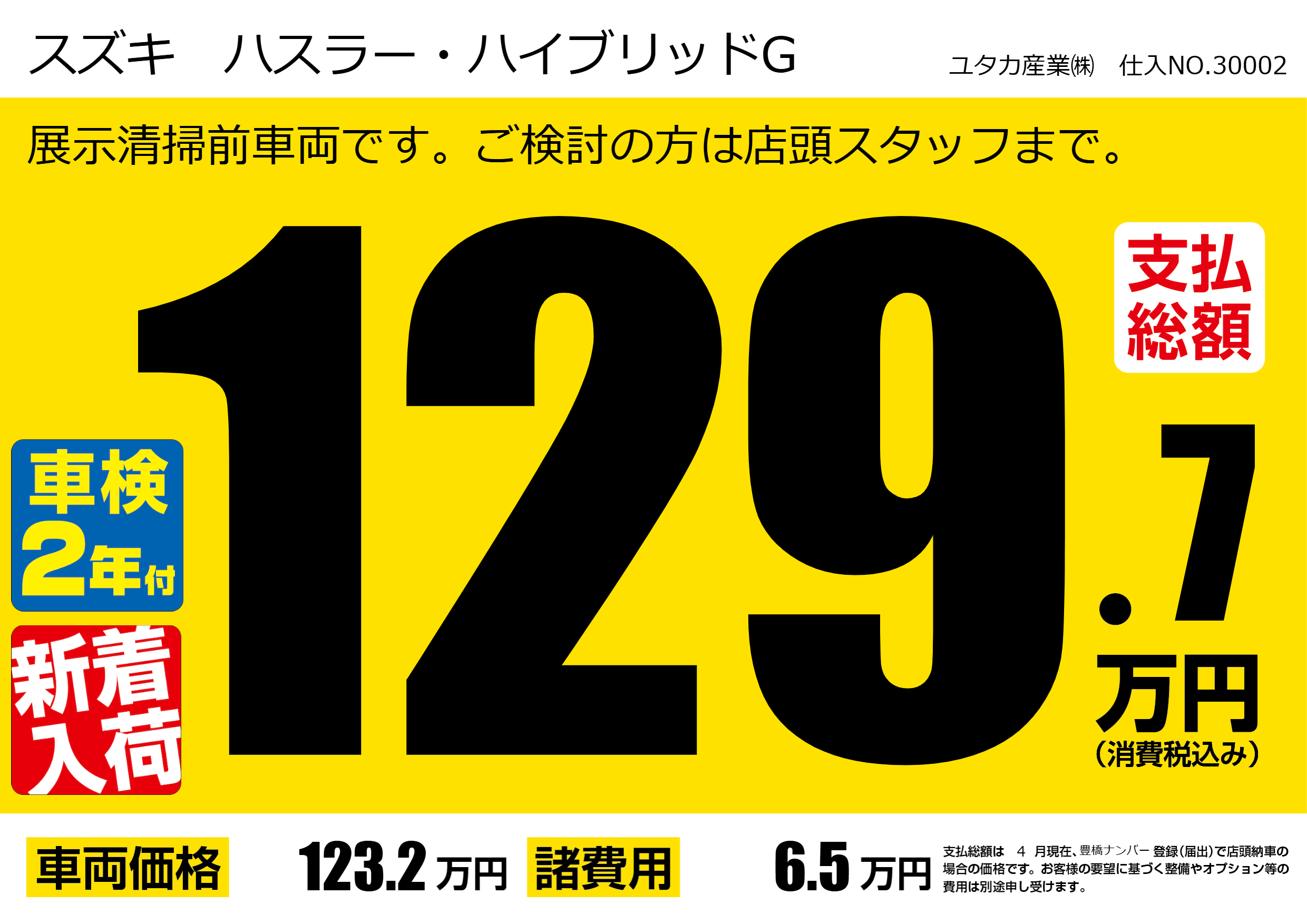 | 車名 | スズキ ハスラー・ハイブリッドG | グレード ミッション 排気量 |