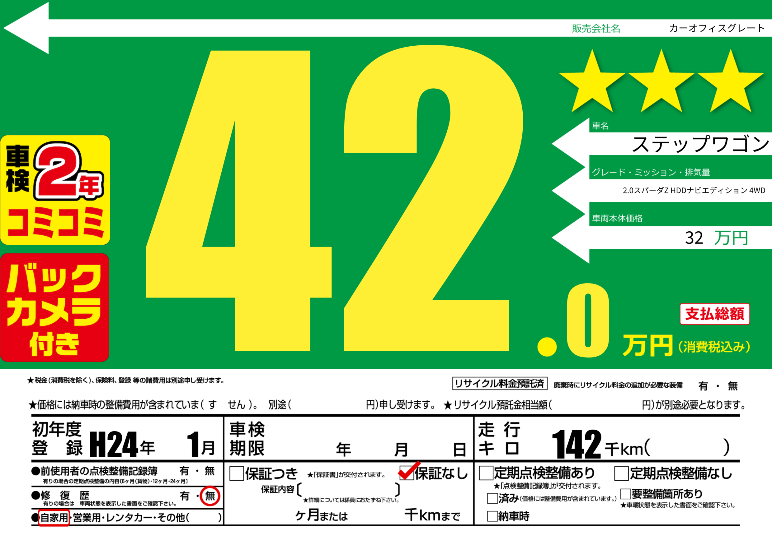 | 走行キロ | 14.2万km | 初年度登録 | H24年1月 |