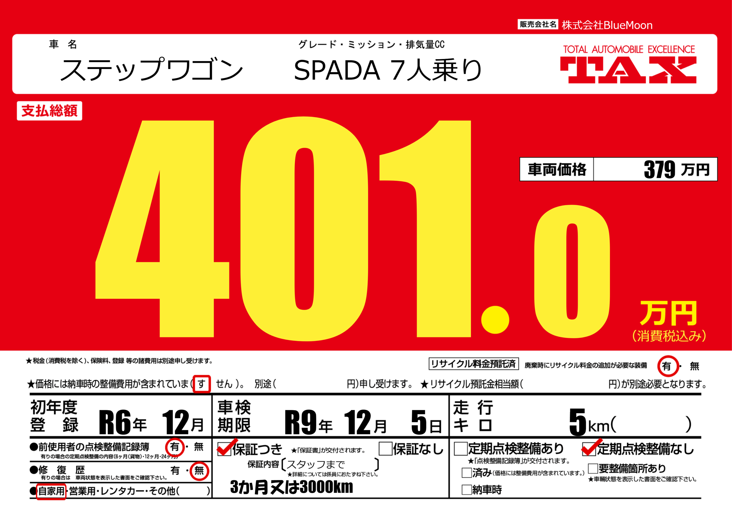 | 車検制限 | R9年 12月 5日 | ||