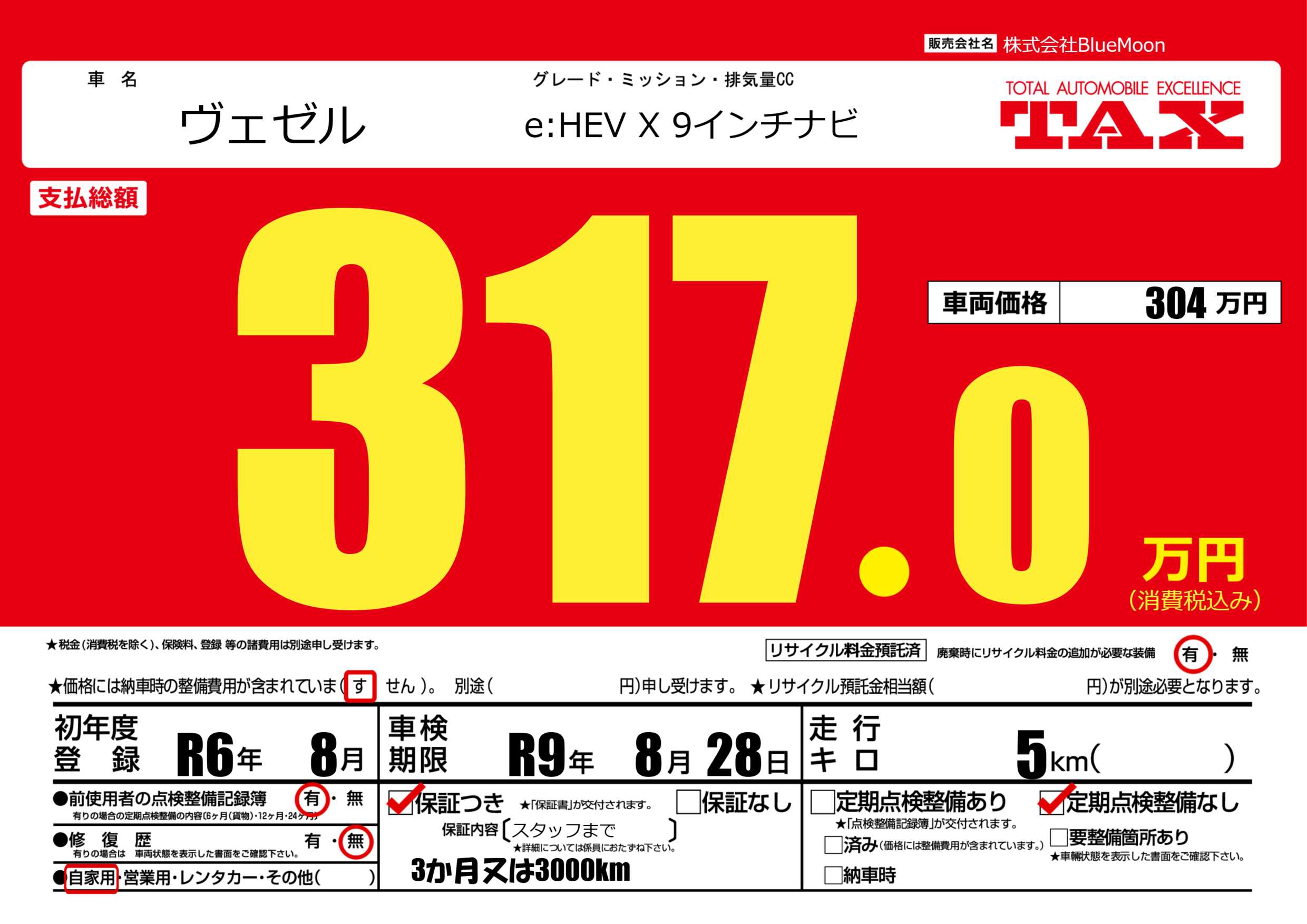 | 車名 | ヴェゼル | グレード ミッション 排気量 |