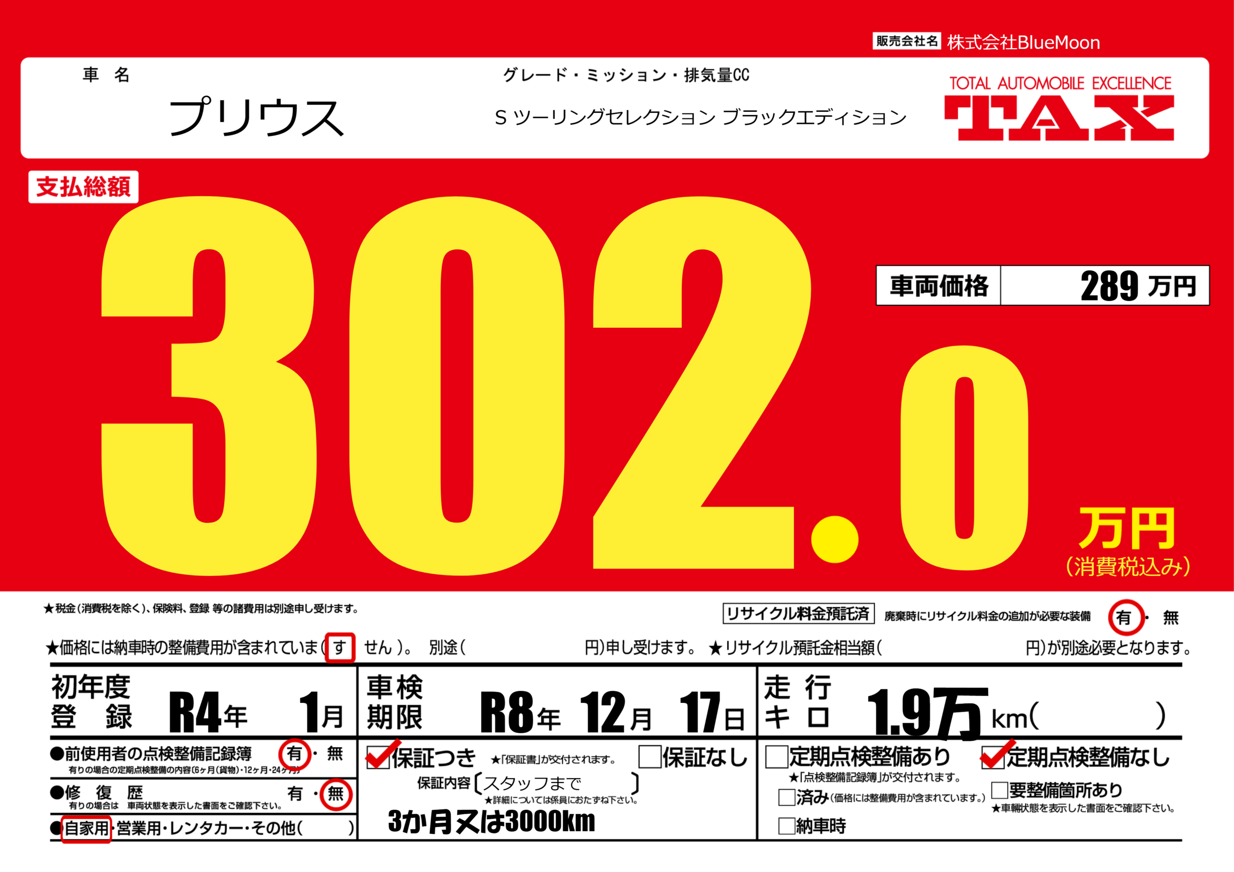 | 車名 | プリウス | グレード ミッション 排気量 |