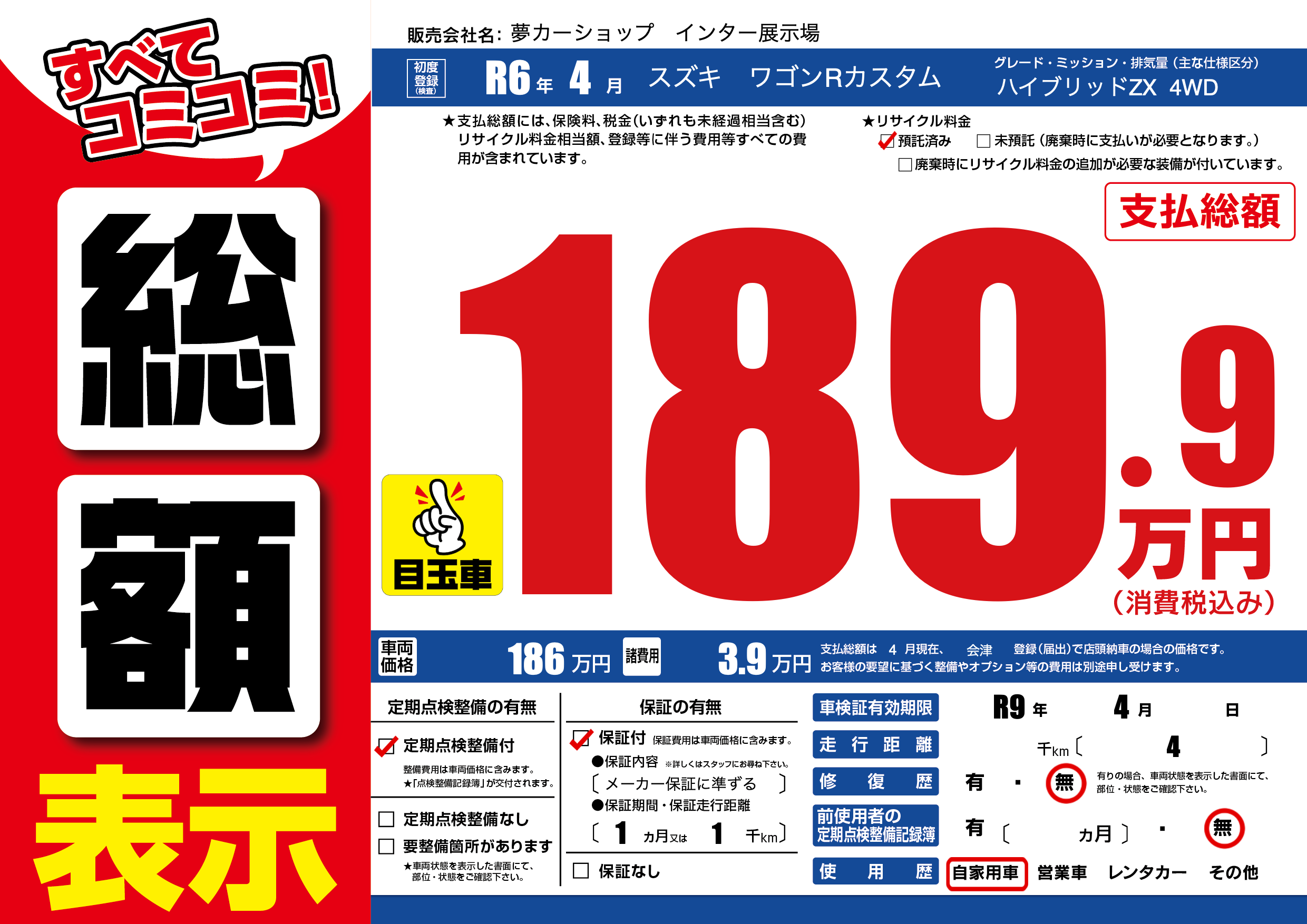 | 走行キロ | - | 初年度登録 | R6年4月 |