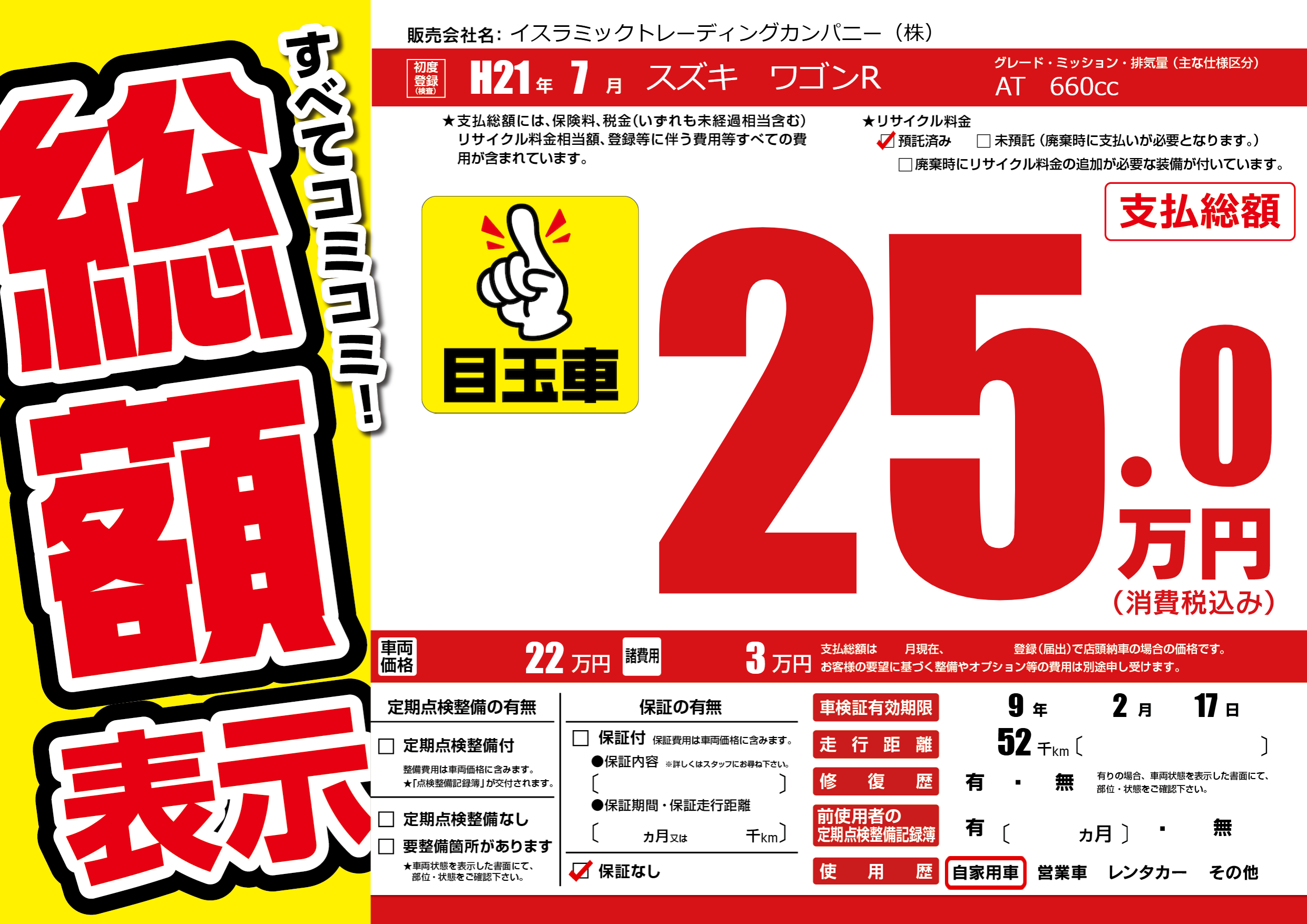 | 車検制限 | 9年 2月 17日 | ||