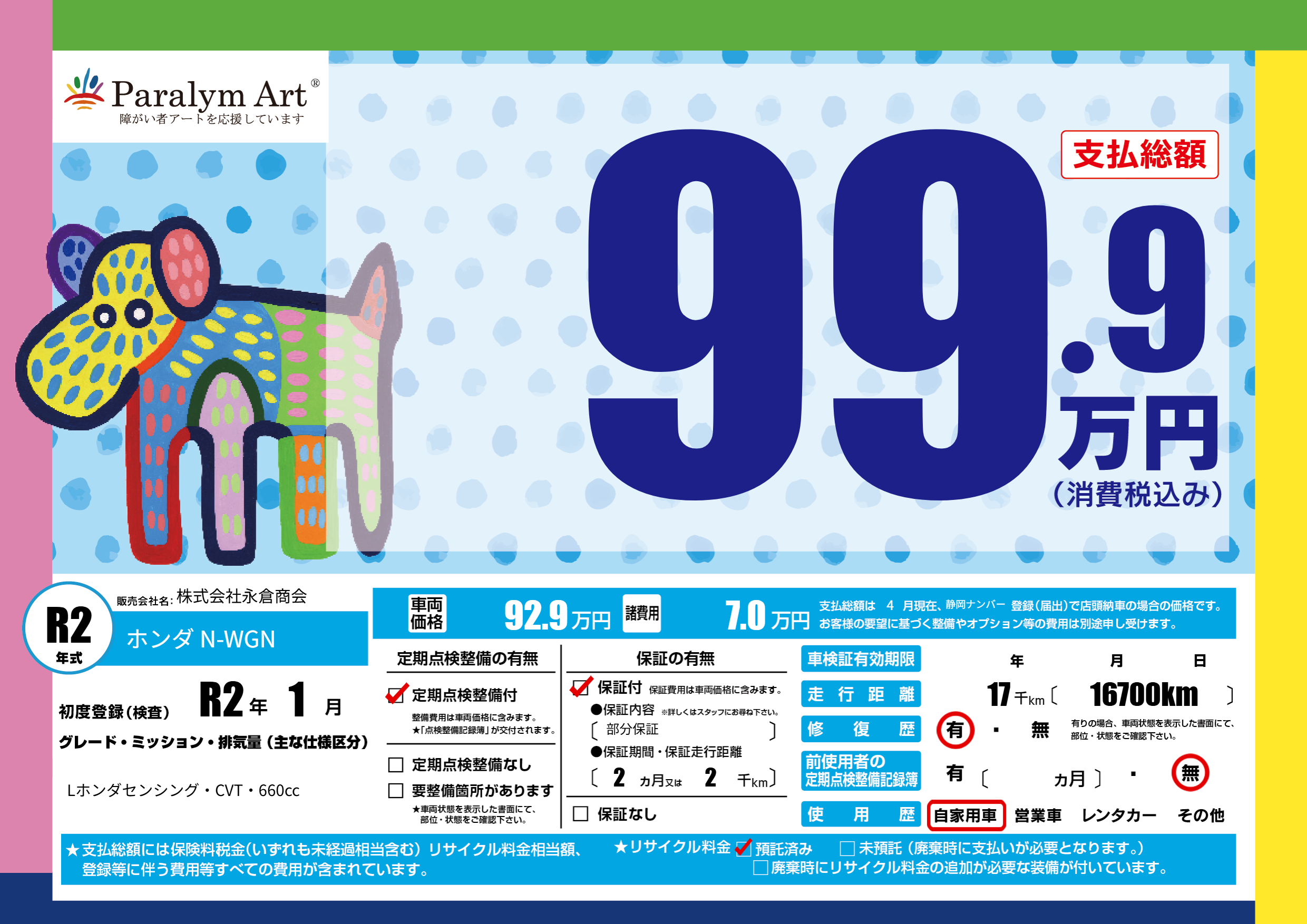 | 車名 | ホンダ N-WGN | グレード ミッション 排気量 |