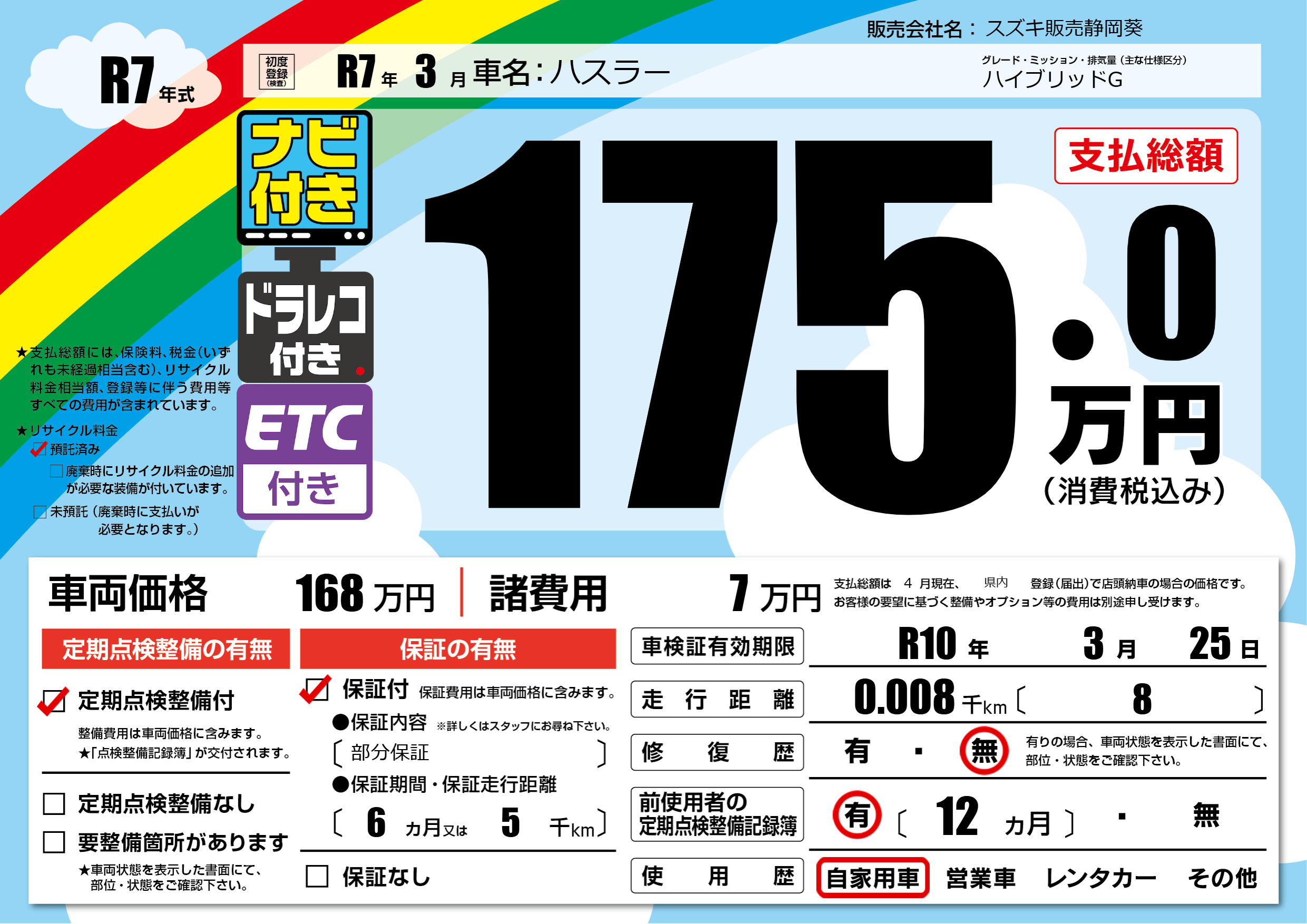 なし | 車検制限 | R10年3月25月 |