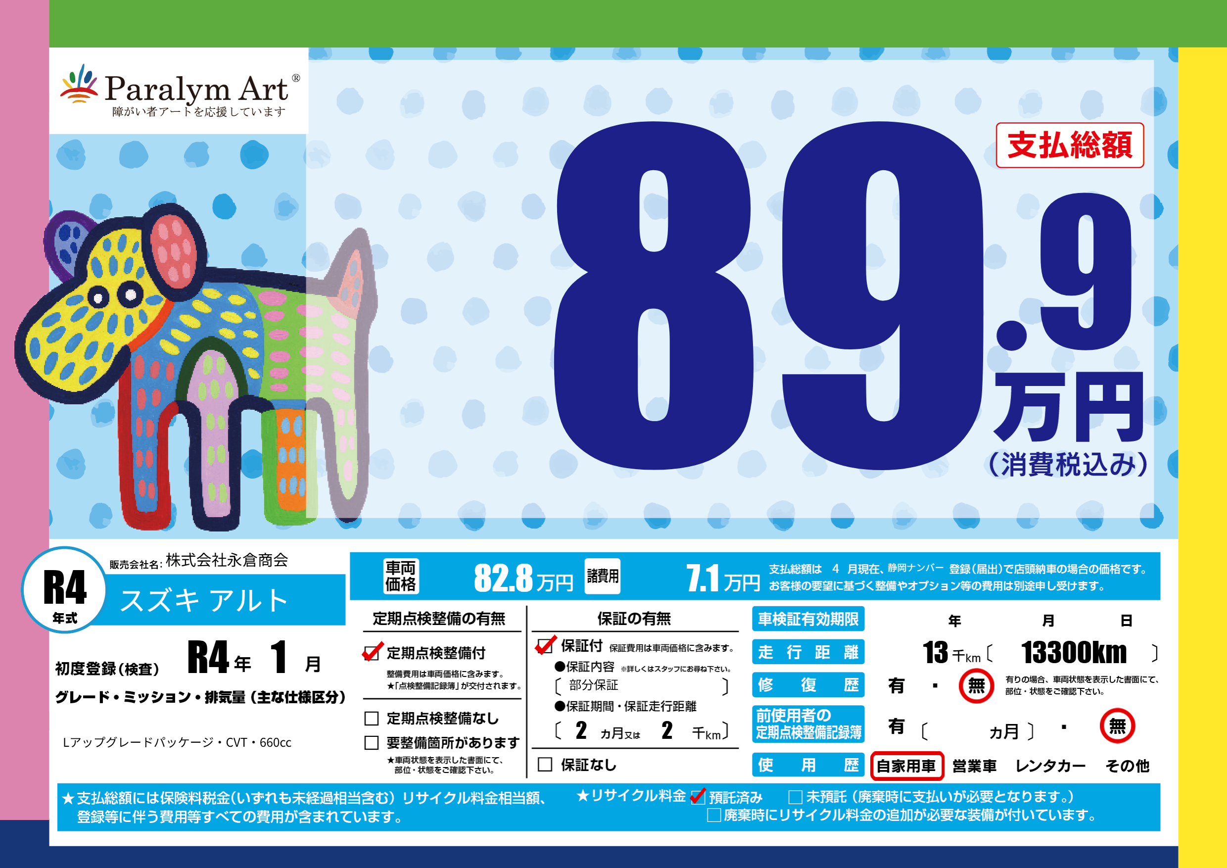 | リサイクル料金 預託済 |