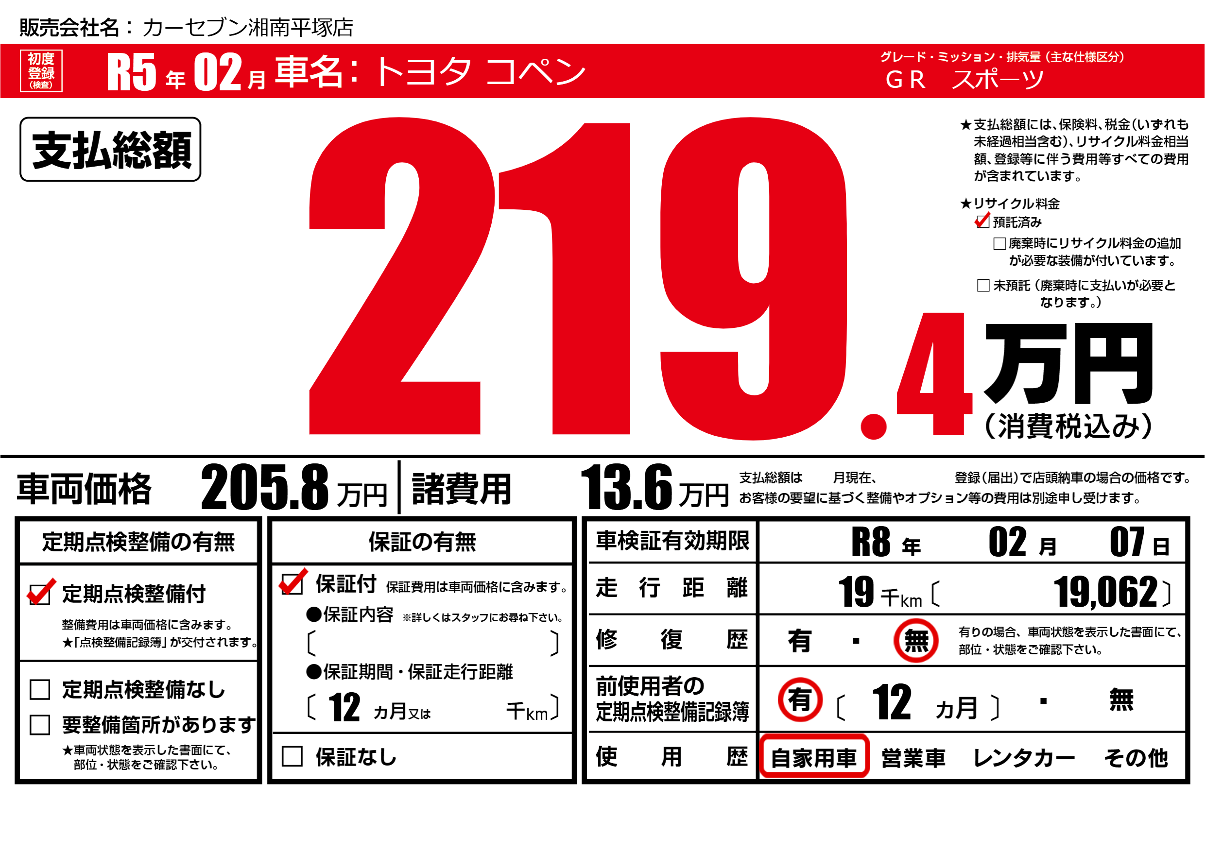 | 定期点検整備 | 定期点検整備あり | ||
