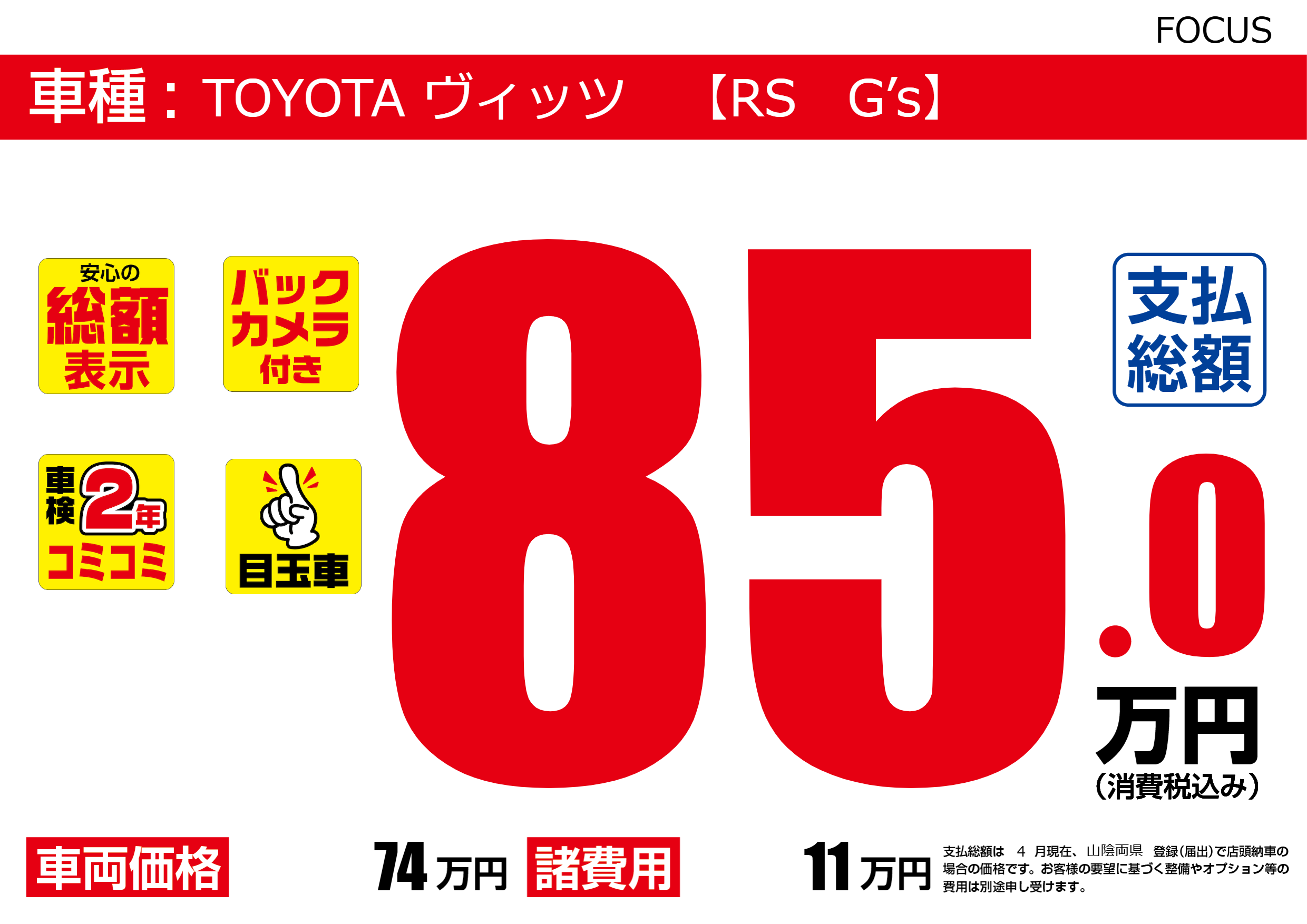 | 車名 | TOYOTA ヴィッツ 【RS G’s】 | グレード ミッション 排気量 |