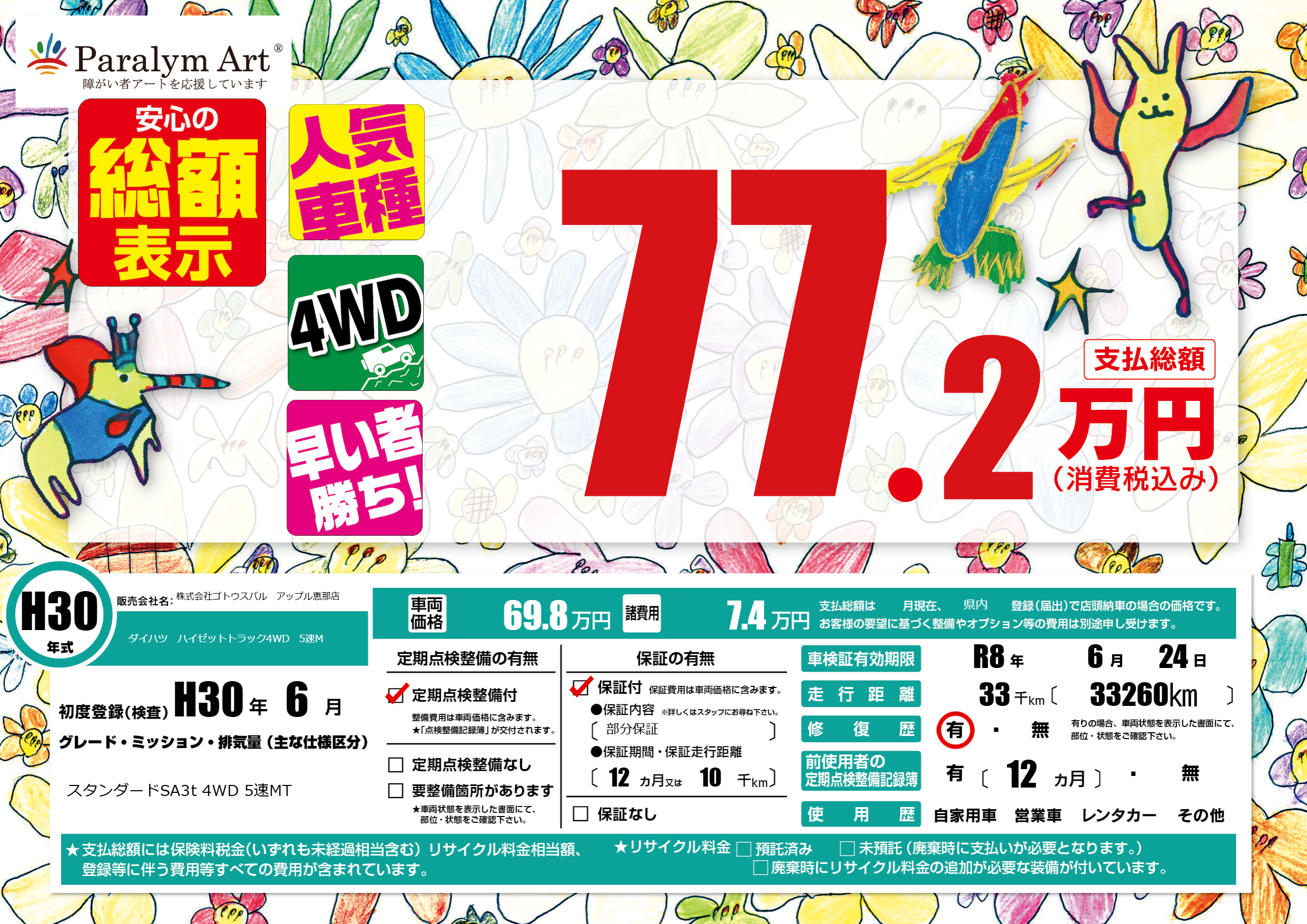 | 走行キロ | 3.3万km | 初年度登録 | H30年6月 |