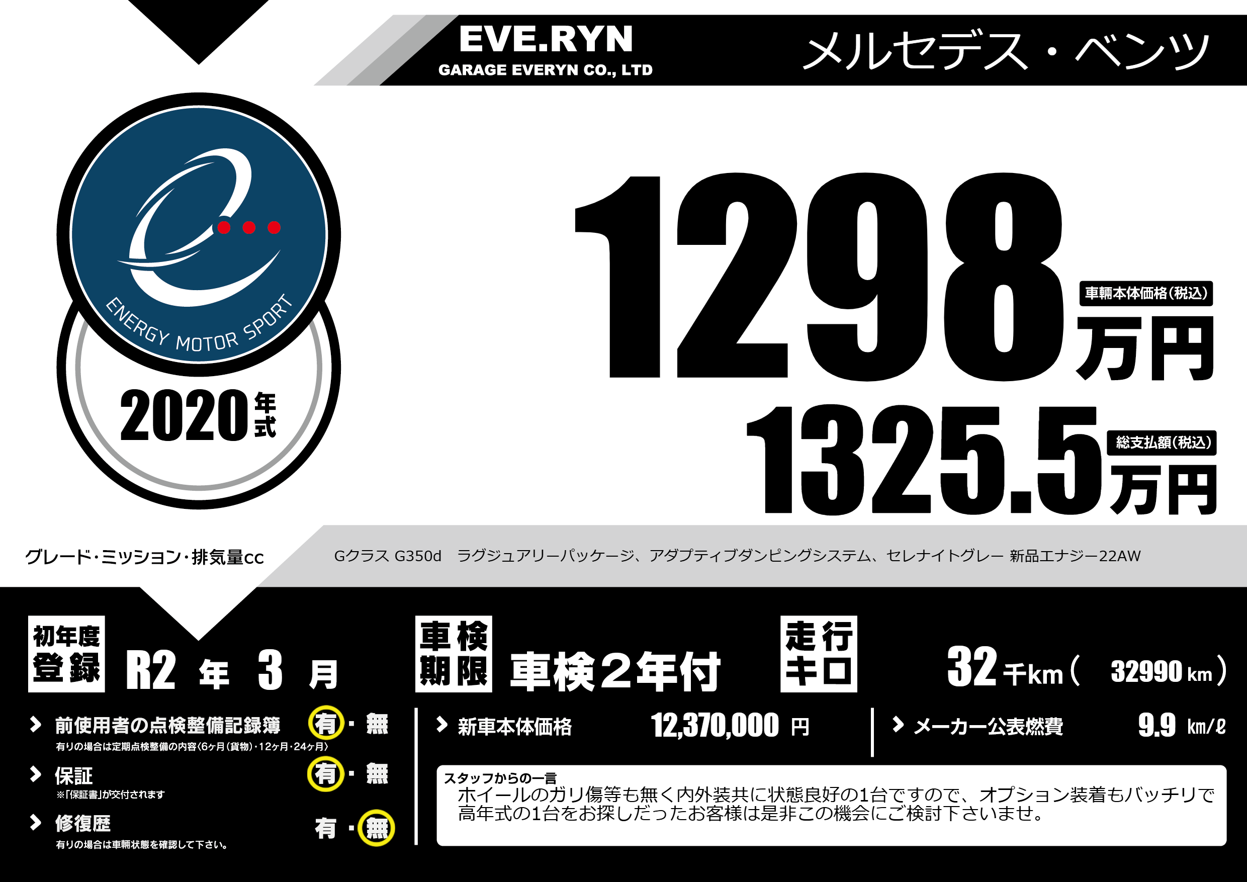 Gクラス G350d ラグジュアリーパッケージ、アダプティブダンピングシステム、セレナイトグレー 新品エナジー22AW |