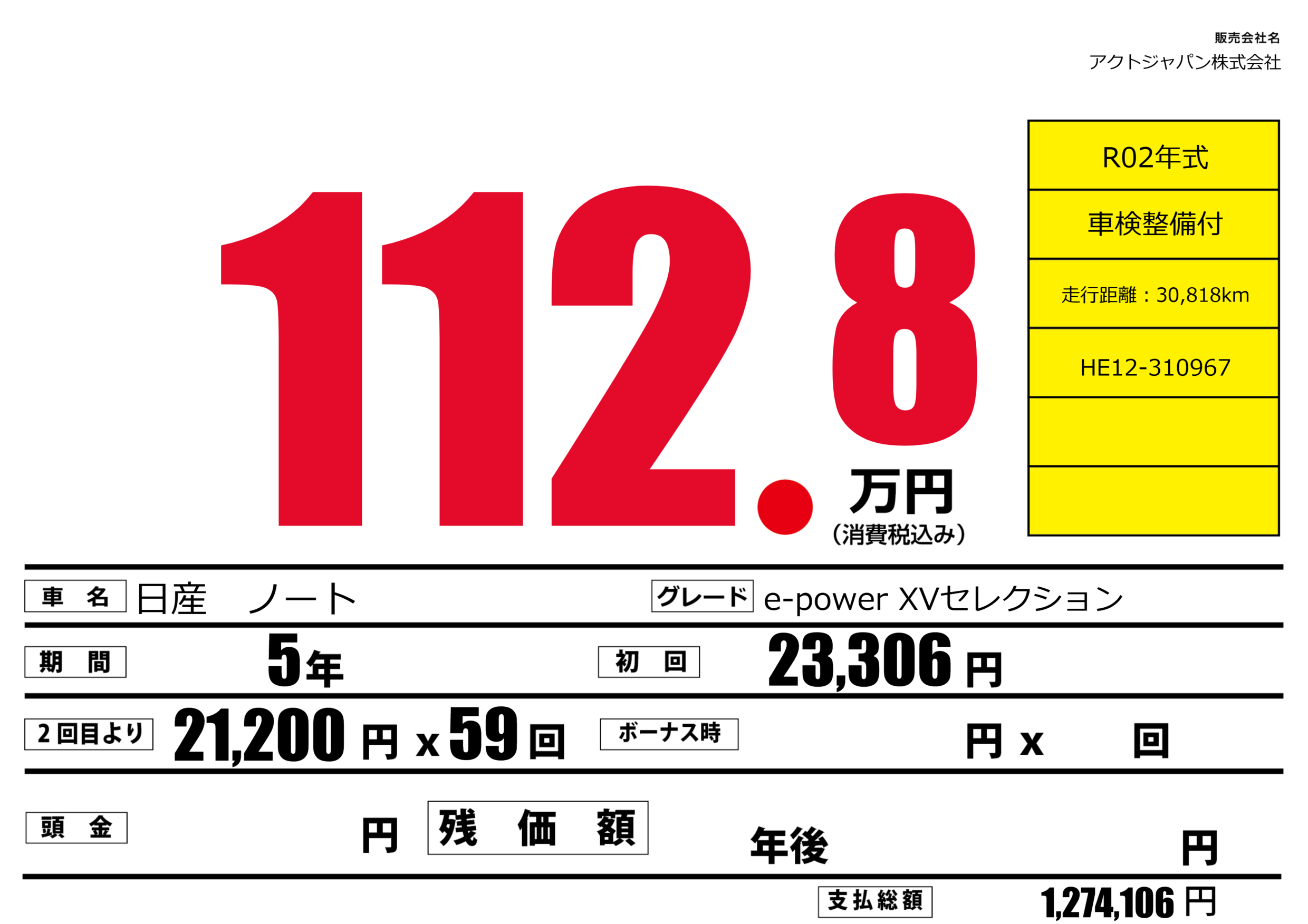 | 車名 | 日産 ノート | グレード ミッション 排気量 |