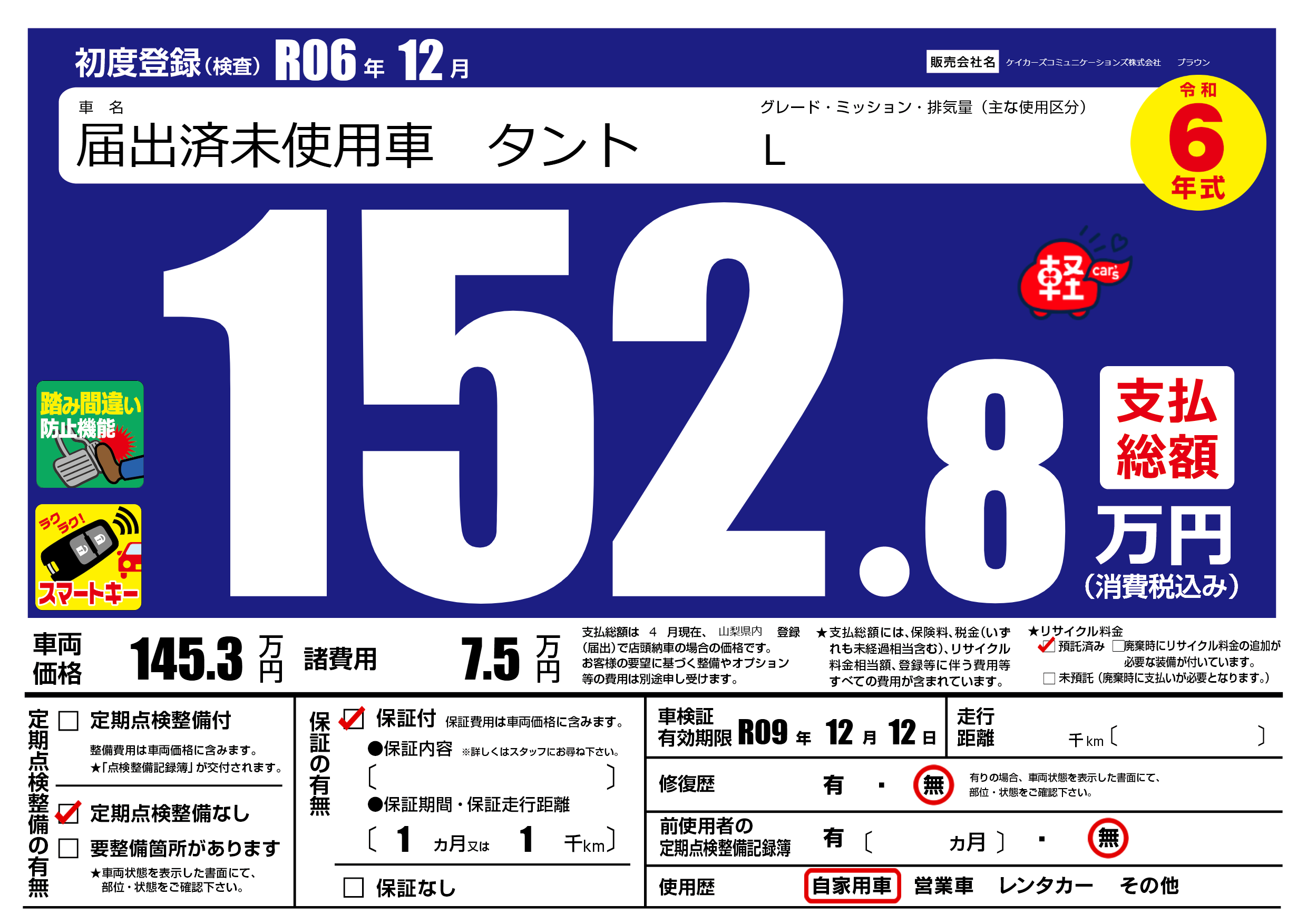 なし | 車検制限 | R09年12月12月 |