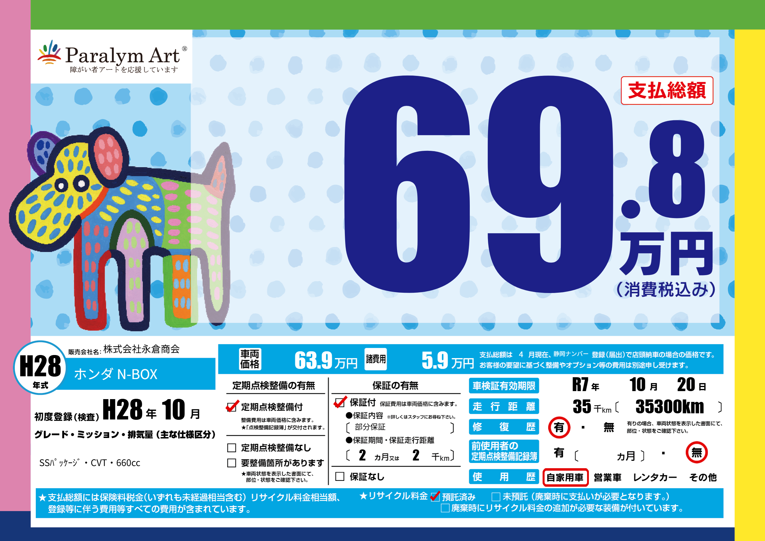 | 車名 | ホンダ N-BOX | グレード ミッション 排気量 |