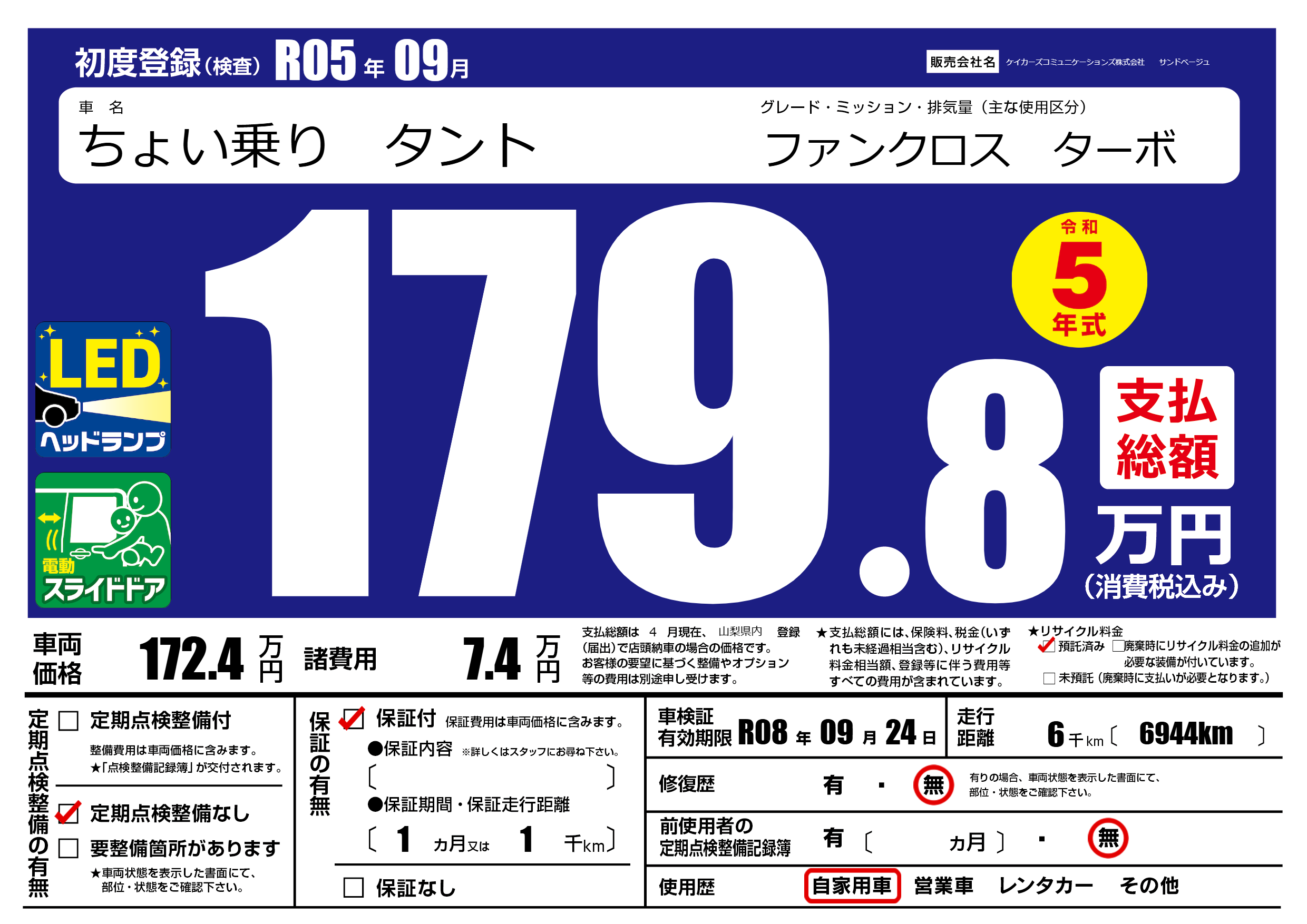 | 車名 | ちょい乗り タント | グレード ミッション 排気量 |