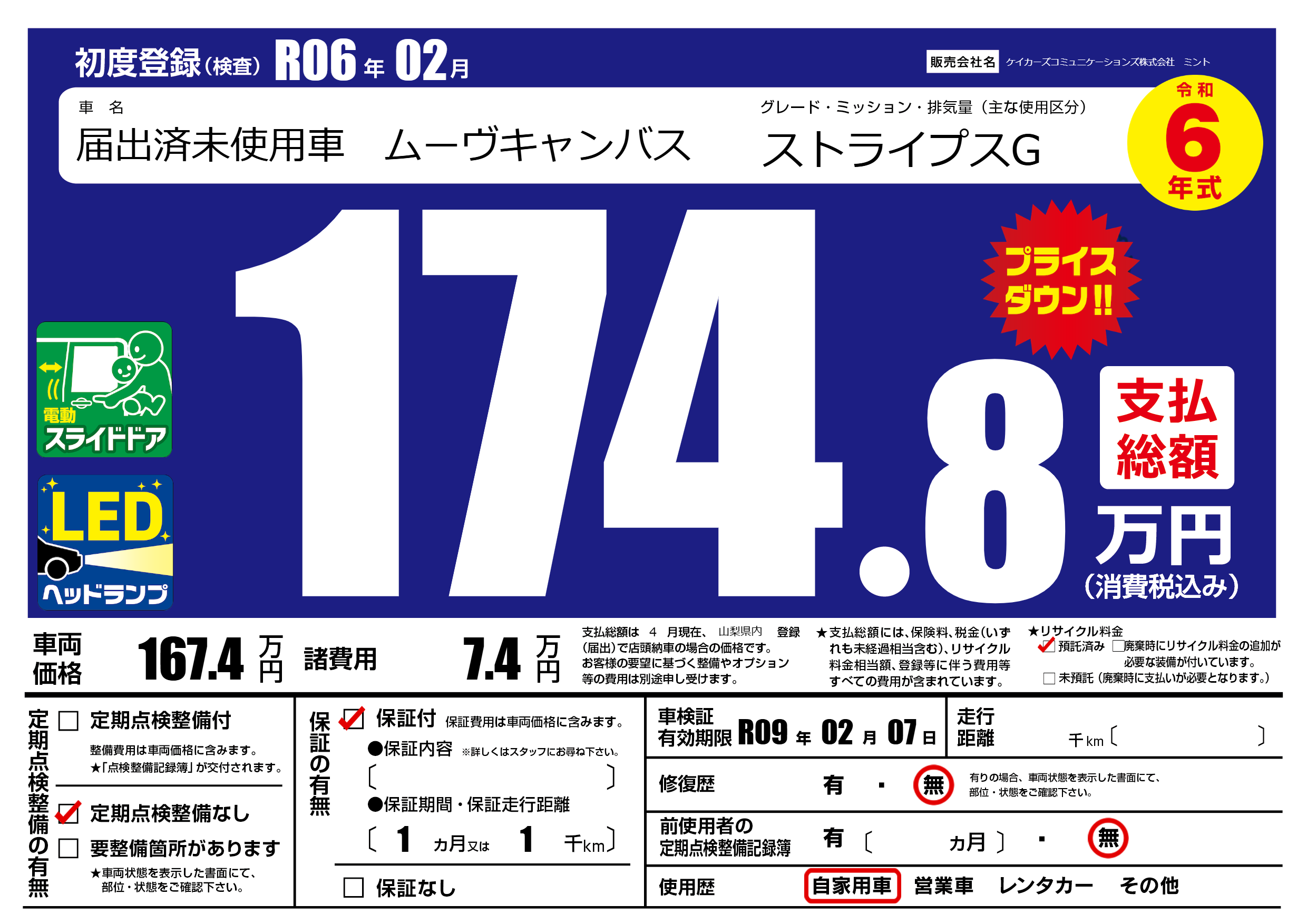 | 走行キロ | - | 初年度登録 | R06年02月 |