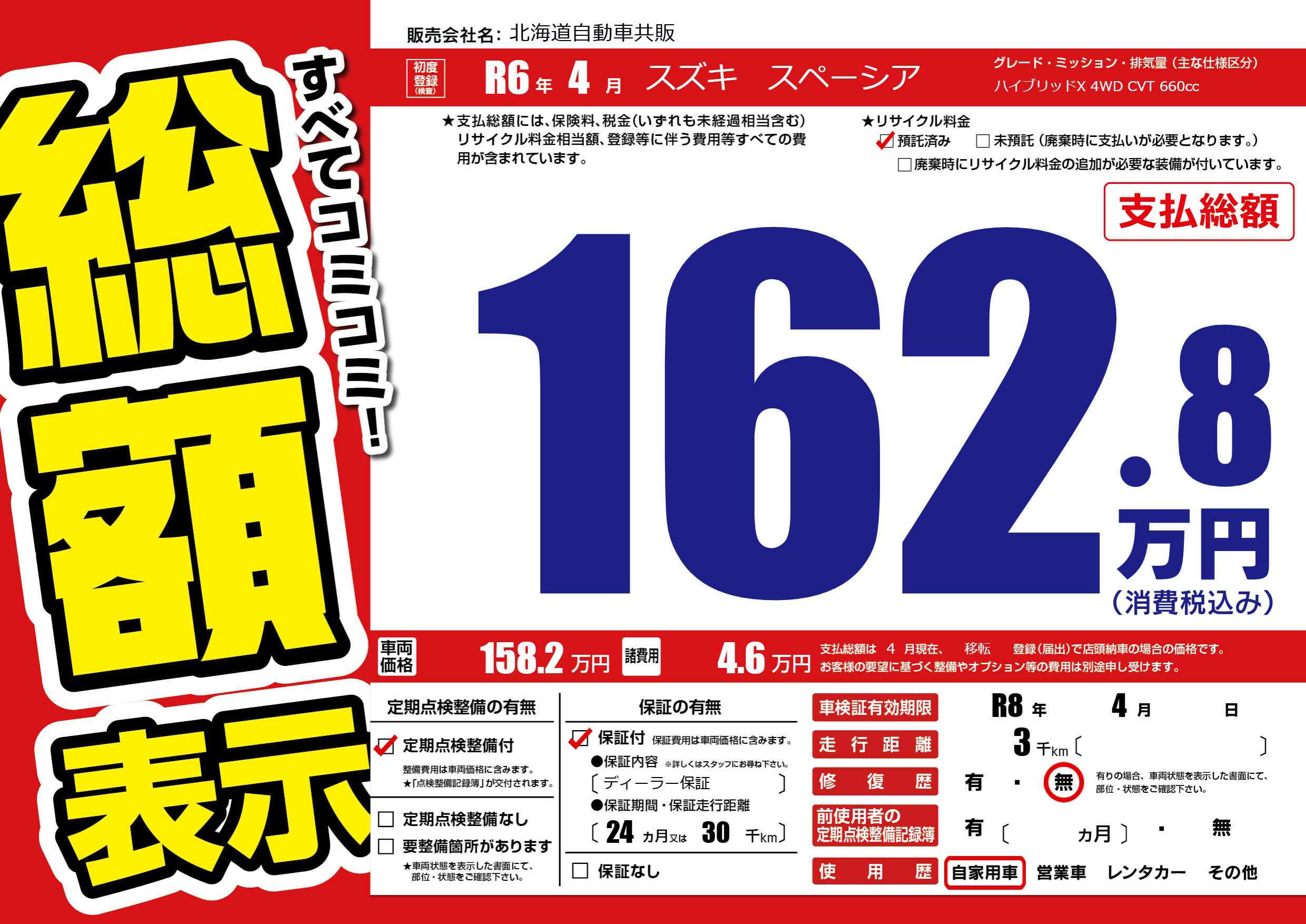 | 走行キロ | 0.3万km | 初年度登録 | R6年4月 |