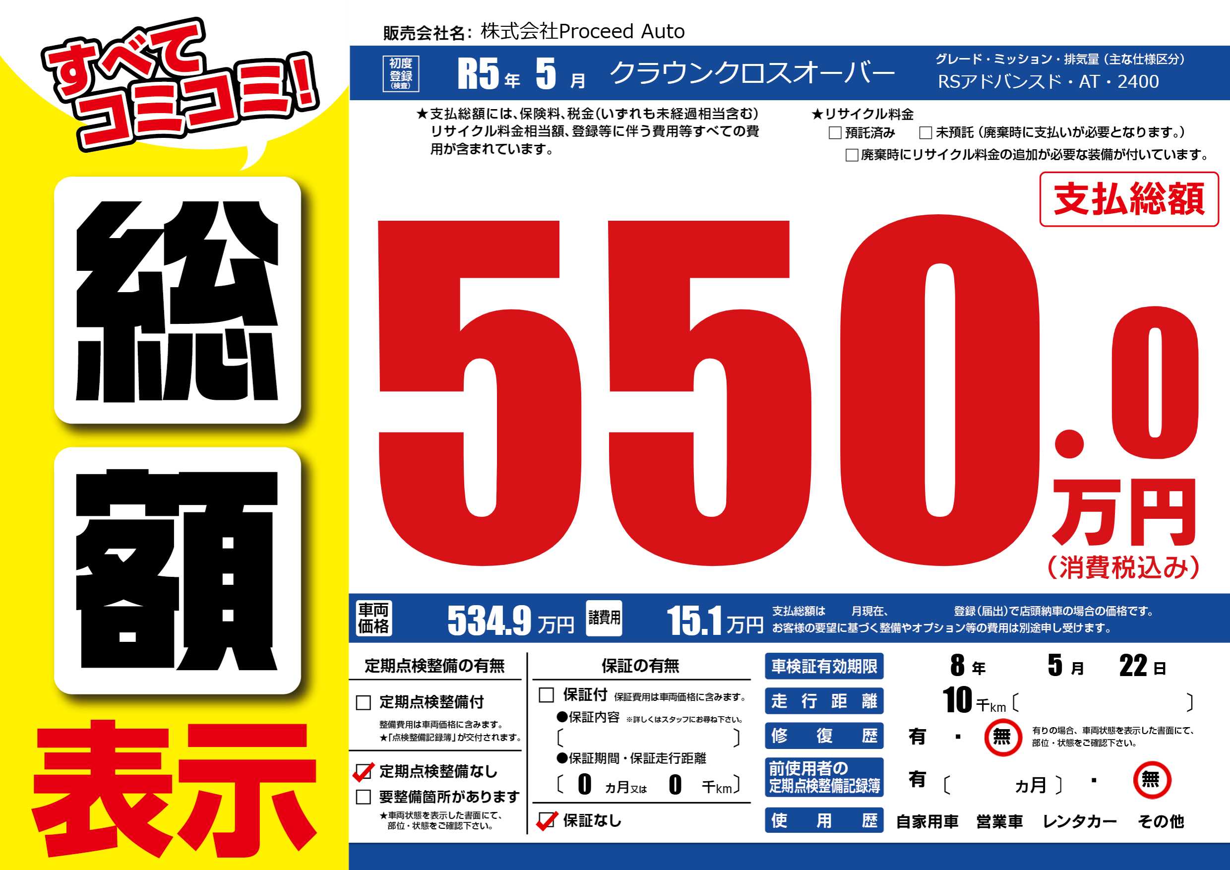 | 車検制限 | 8年 5月 22日 | ||