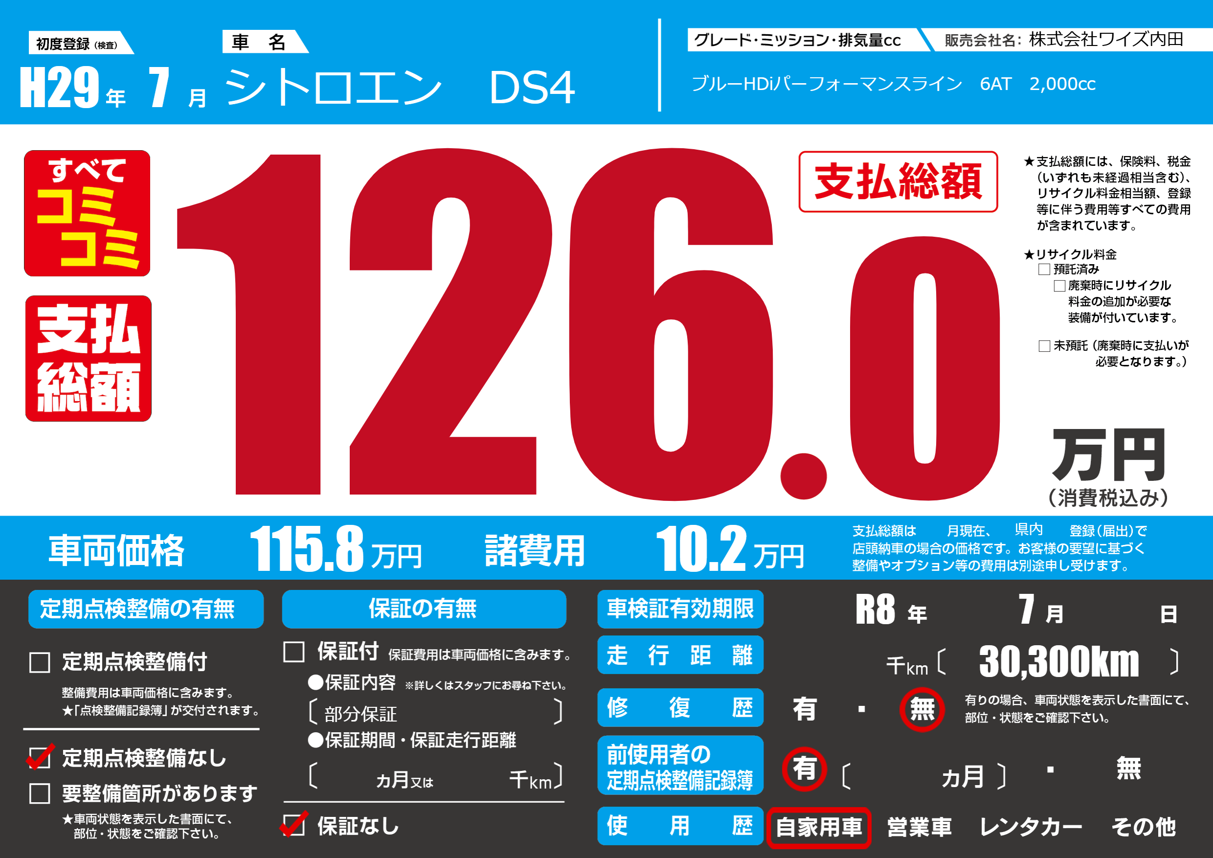 | 車名 | シトロエン DS4 | グレード ミッション 排気量 |