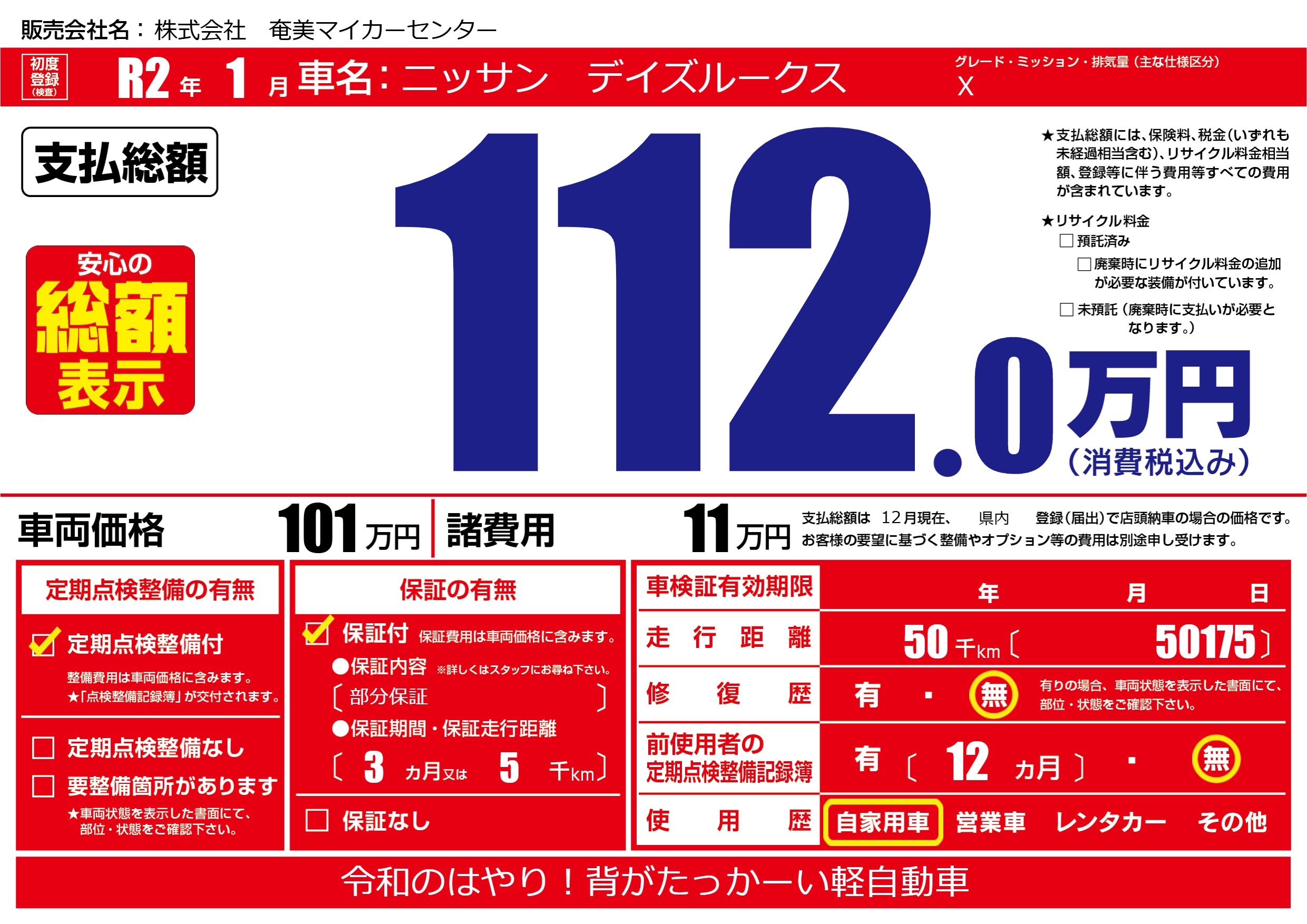 株式会社 奄美マイカーセンターの展示車