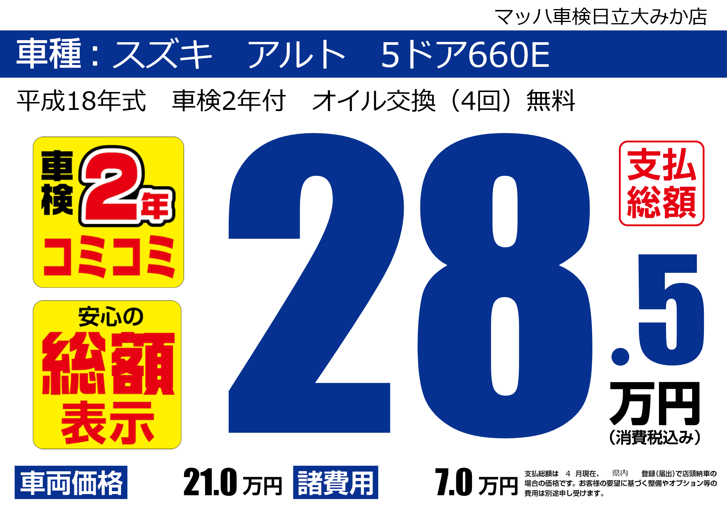 | 車名 | スズキ アルト 5ドア660E | グレード ミッション 排気量 |