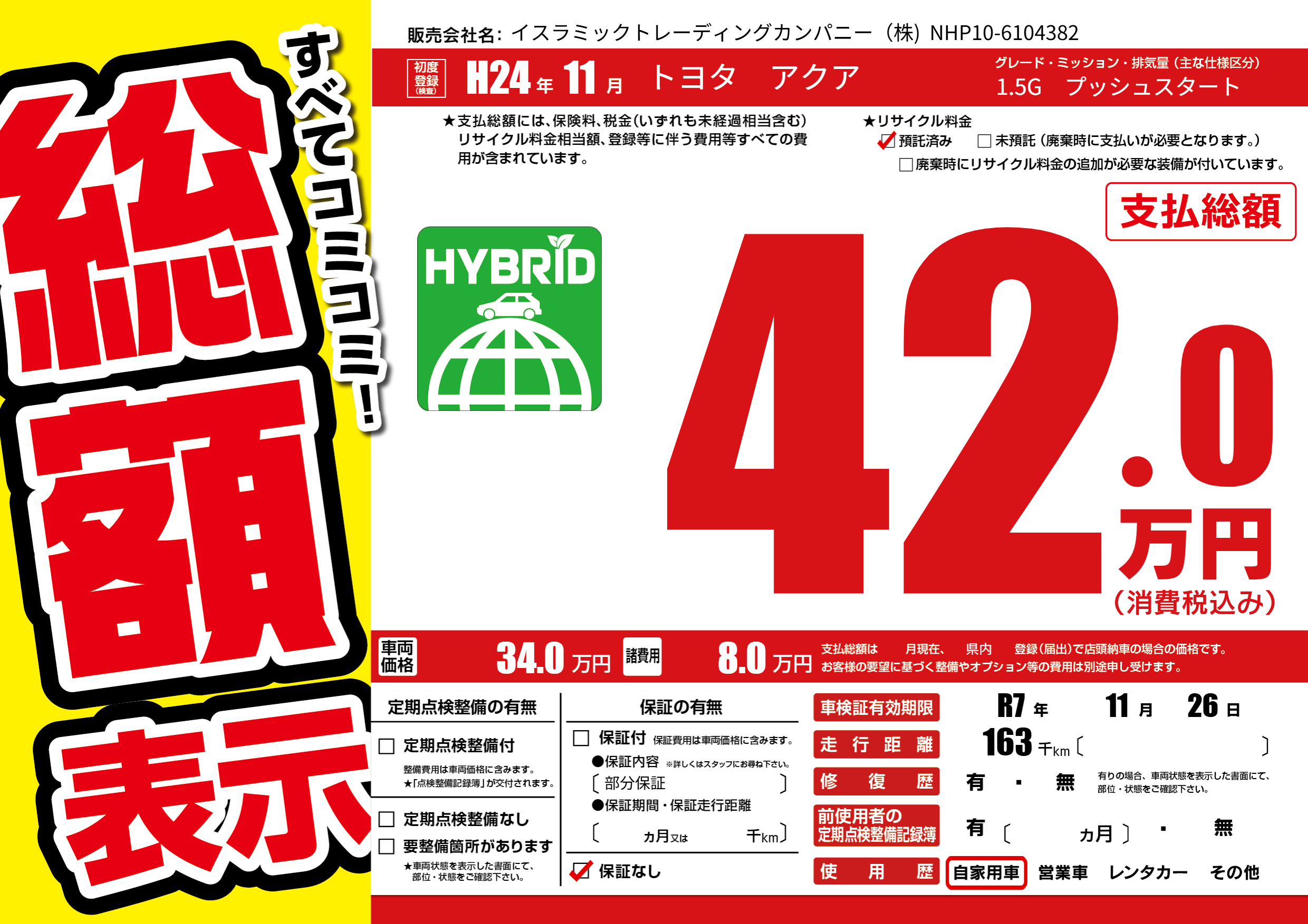 なし | 車検制限 | R7年11月26月 |