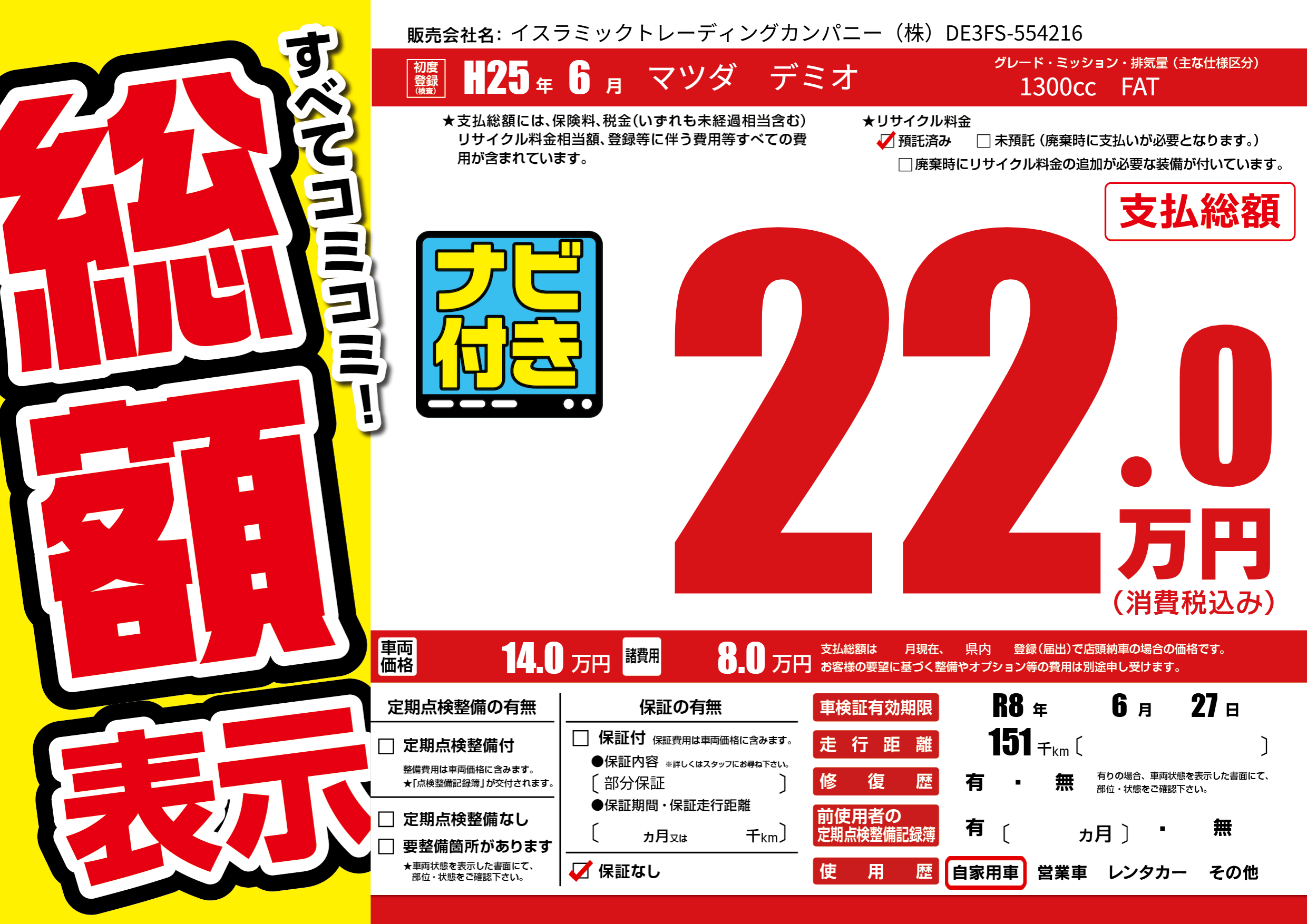 なし | 車検制限 | R8年6月27月 |