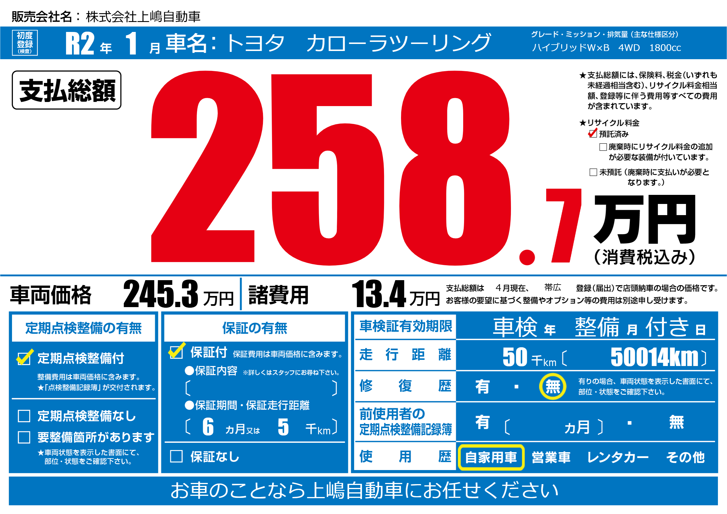 | 走行キロ | 5万km | ||
