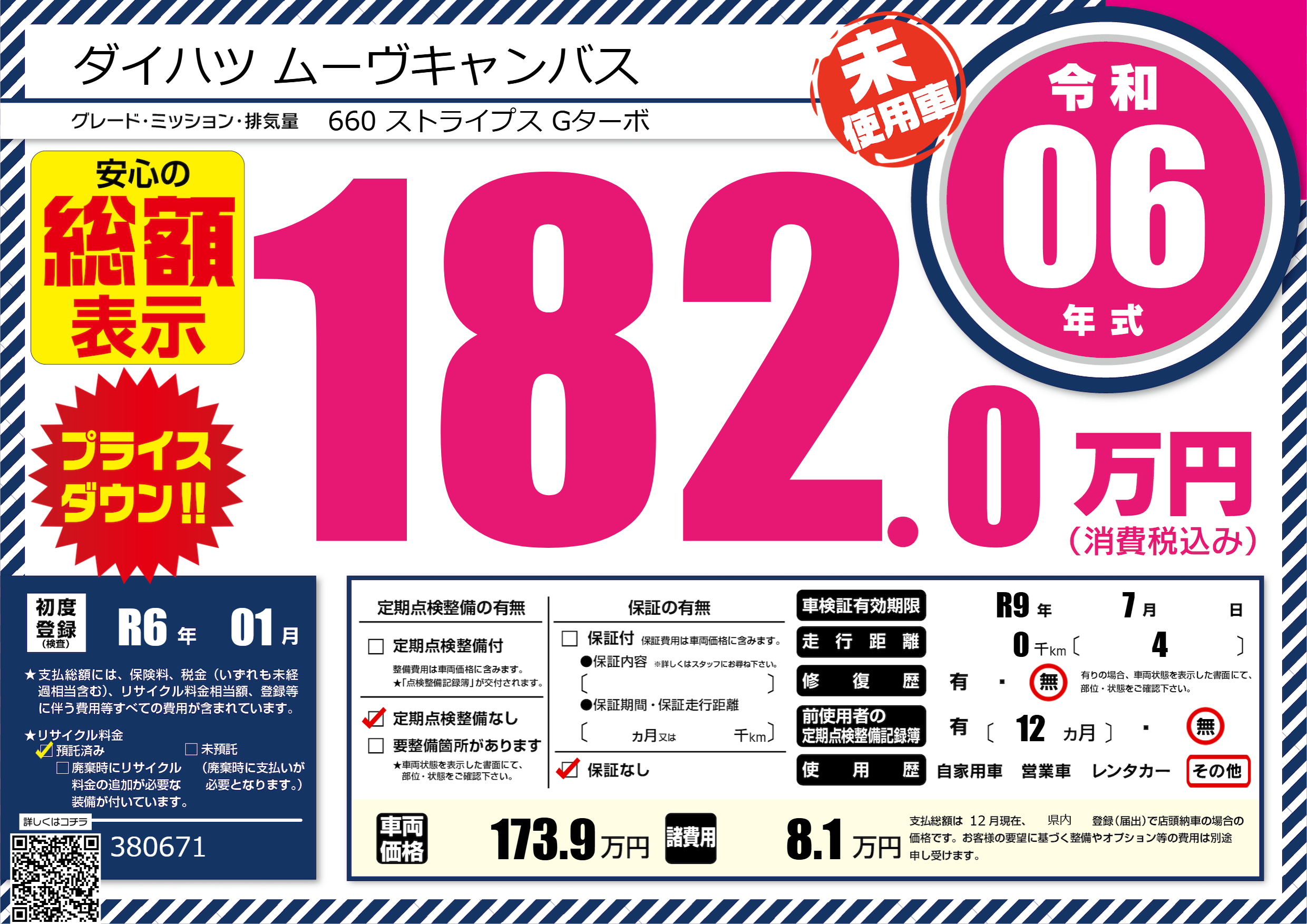 | 走行キロ | - | 初年度登録 | R6年01月 |