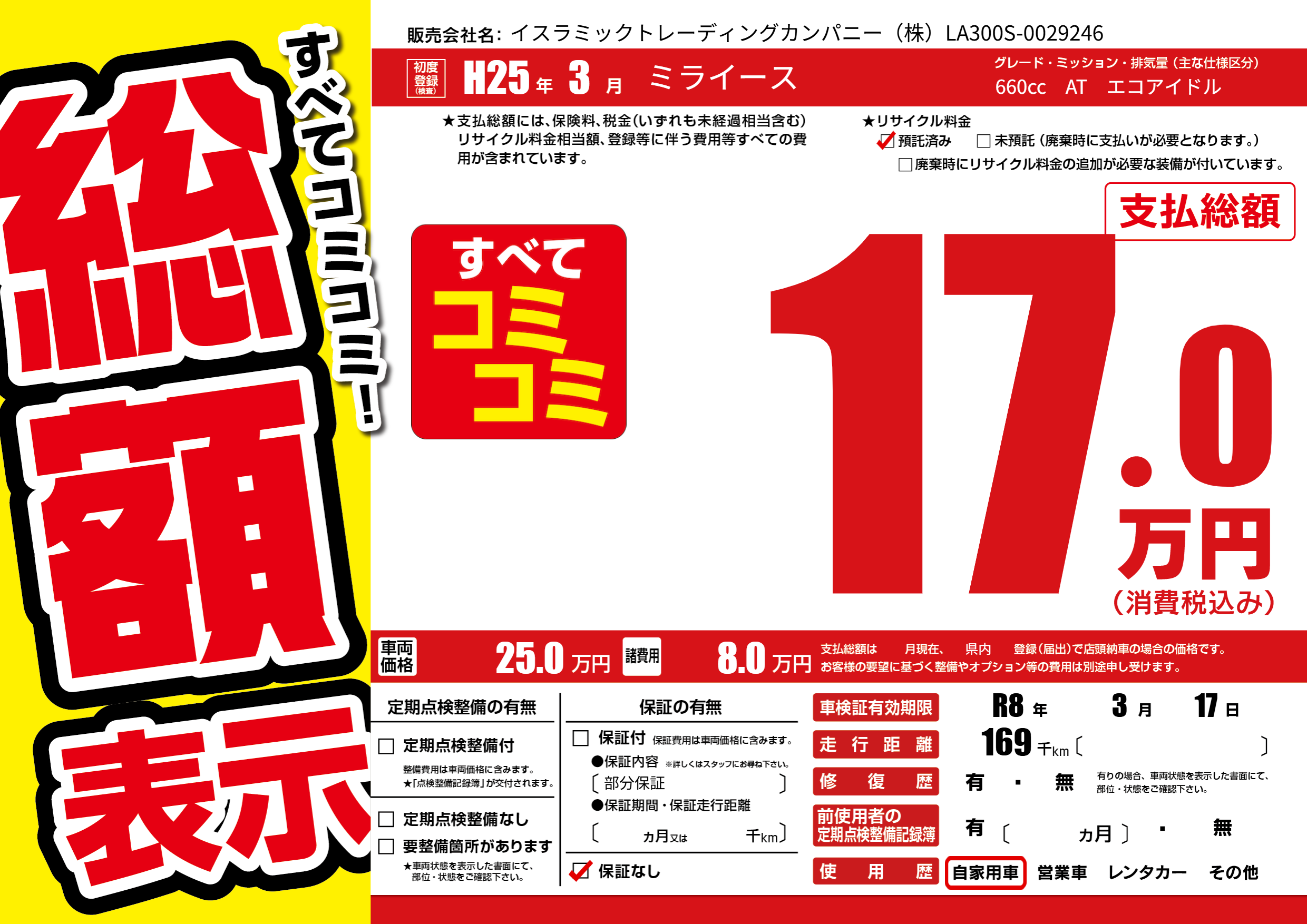 なし | 車検制限 | R8年3月17月 |