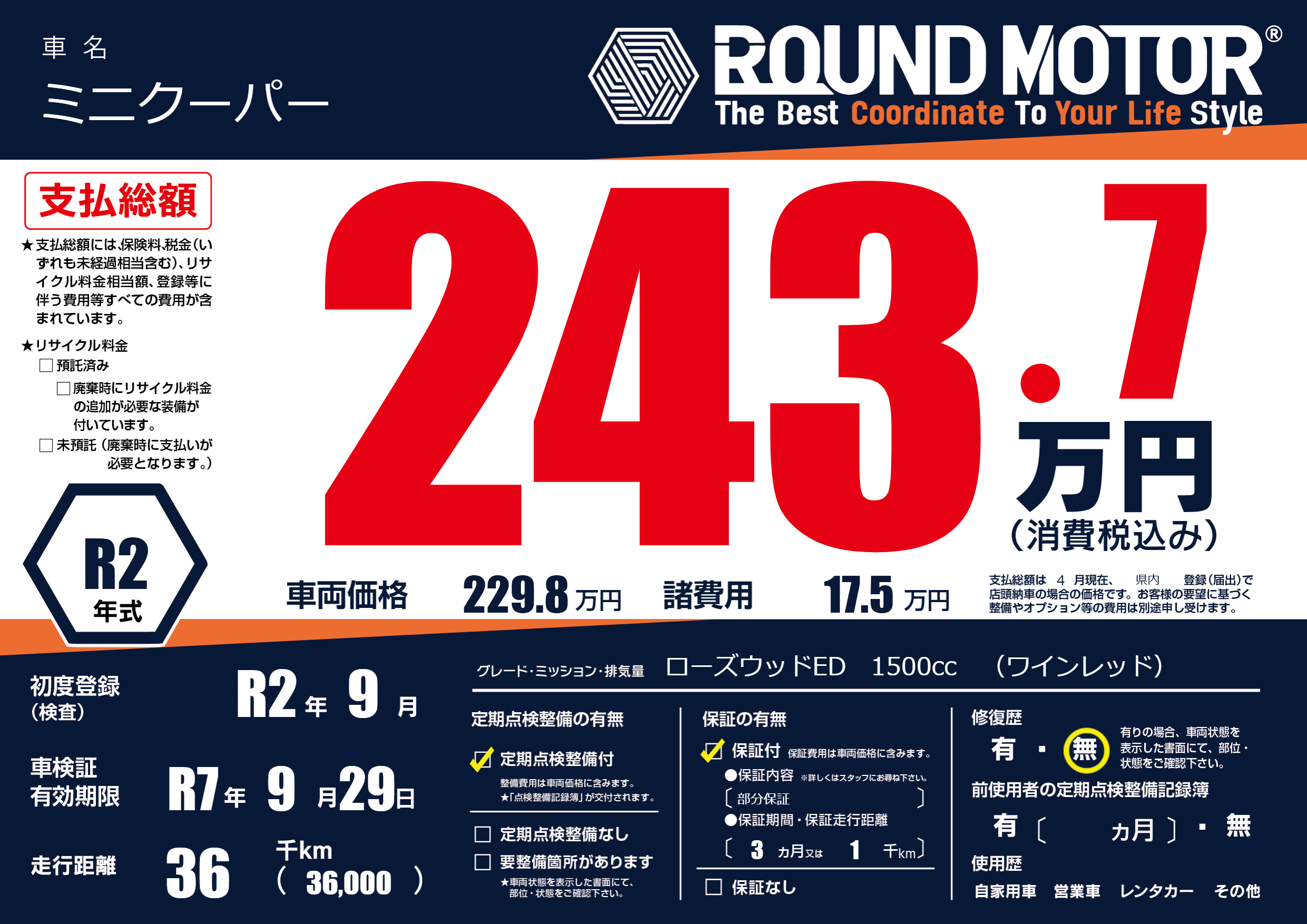なし | 車検制限 | R7年9月29月 |