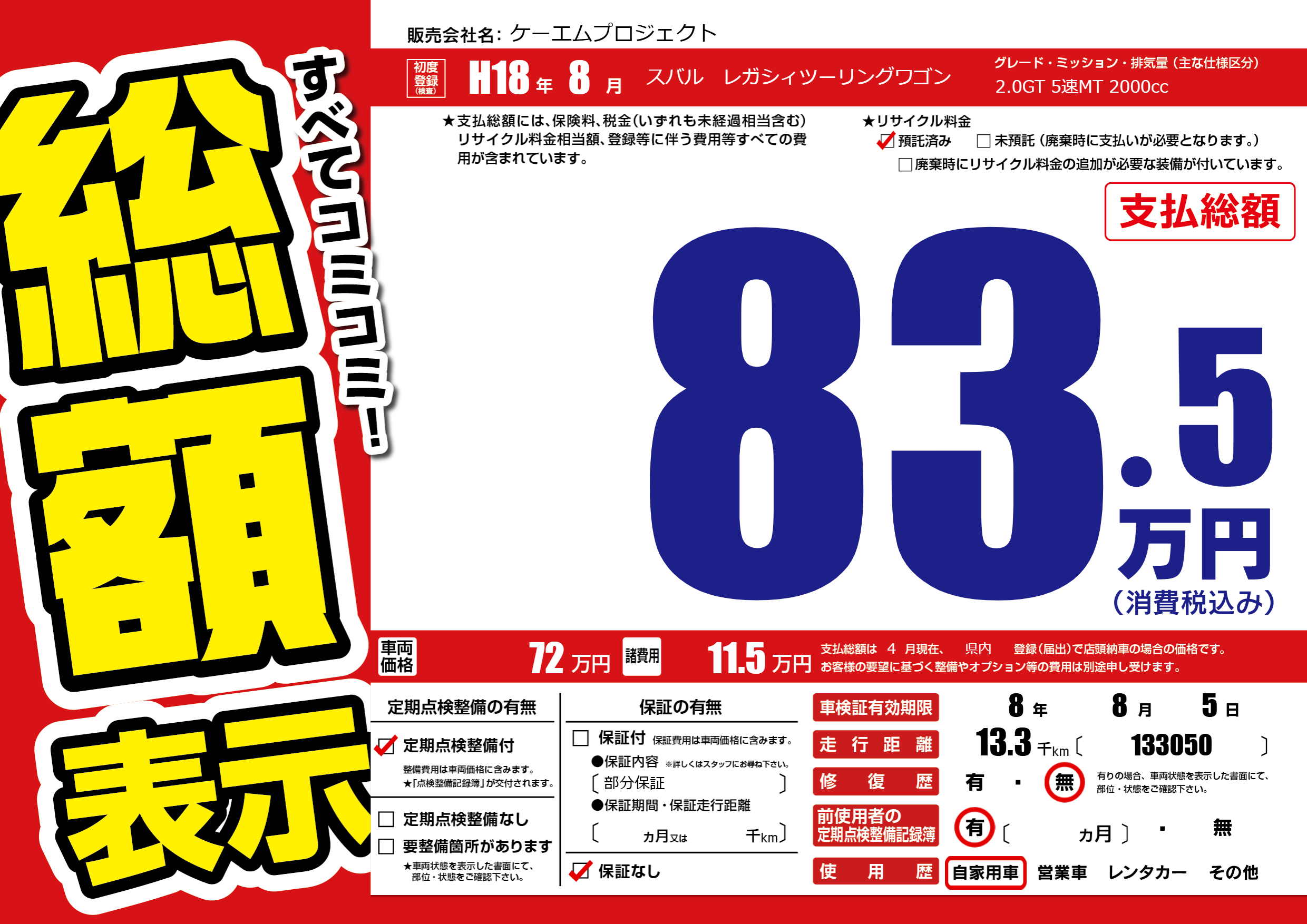 なし | 車検制限 | 8年8月5月 |