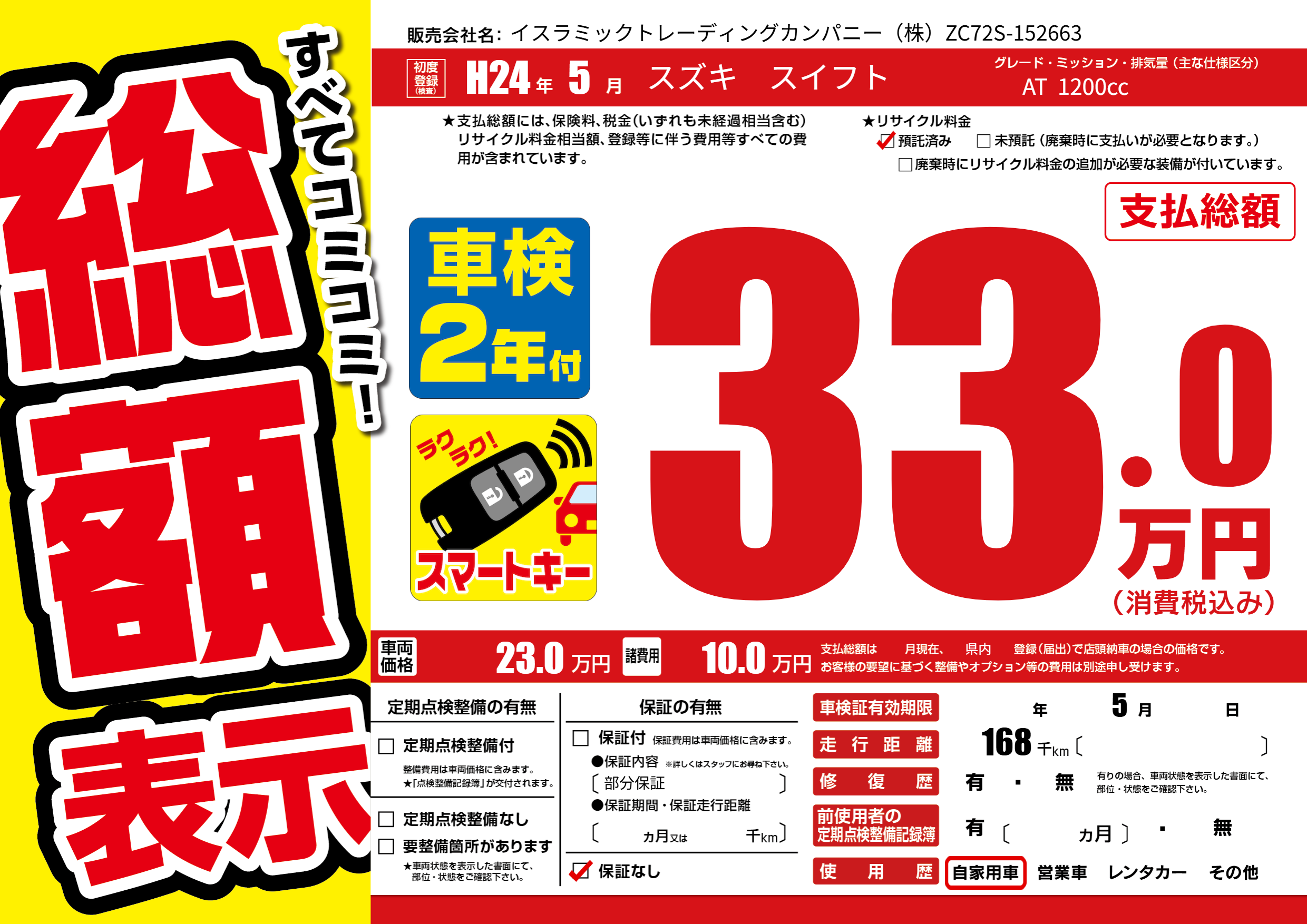 | 車名 | スズキ スイフト | グレード ミッション 排気量 |