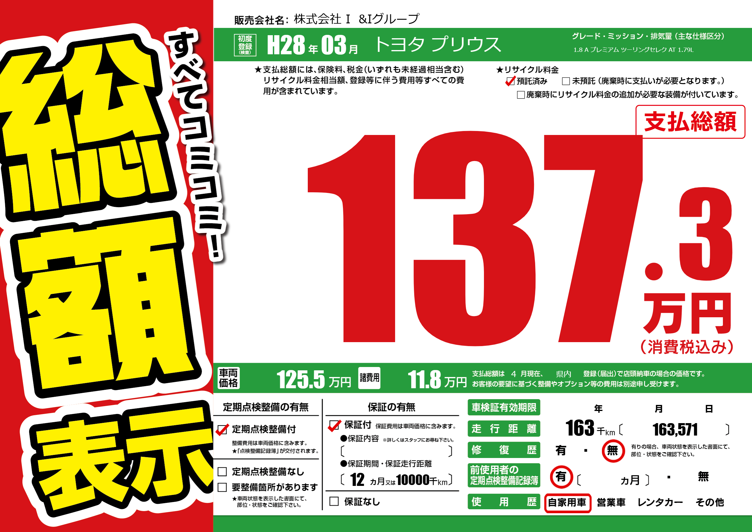 | 定期点検整備 | 定期点検整備あり | ||