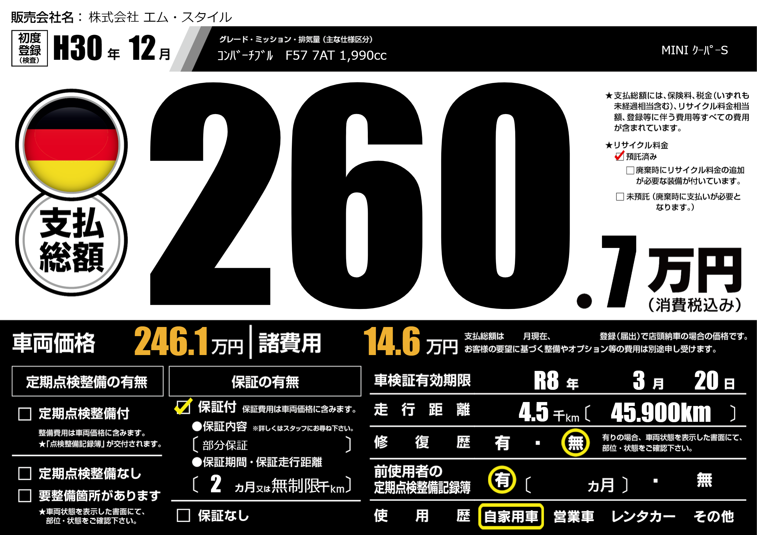 | 車検制限 | R8年 3月 20日 | ||