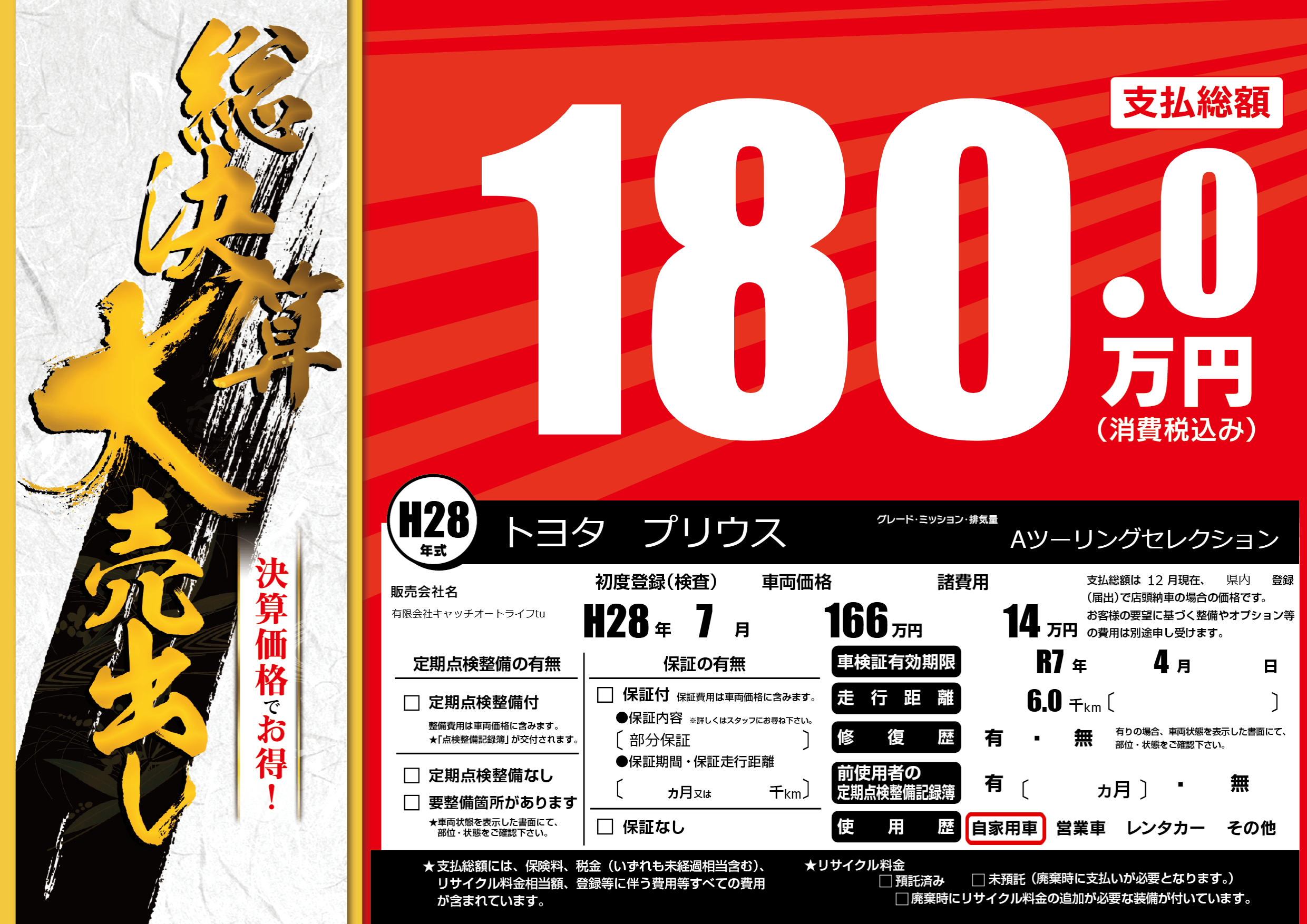 | 車名 | トヨタ プリウス | グレード ミッション 排気量 |