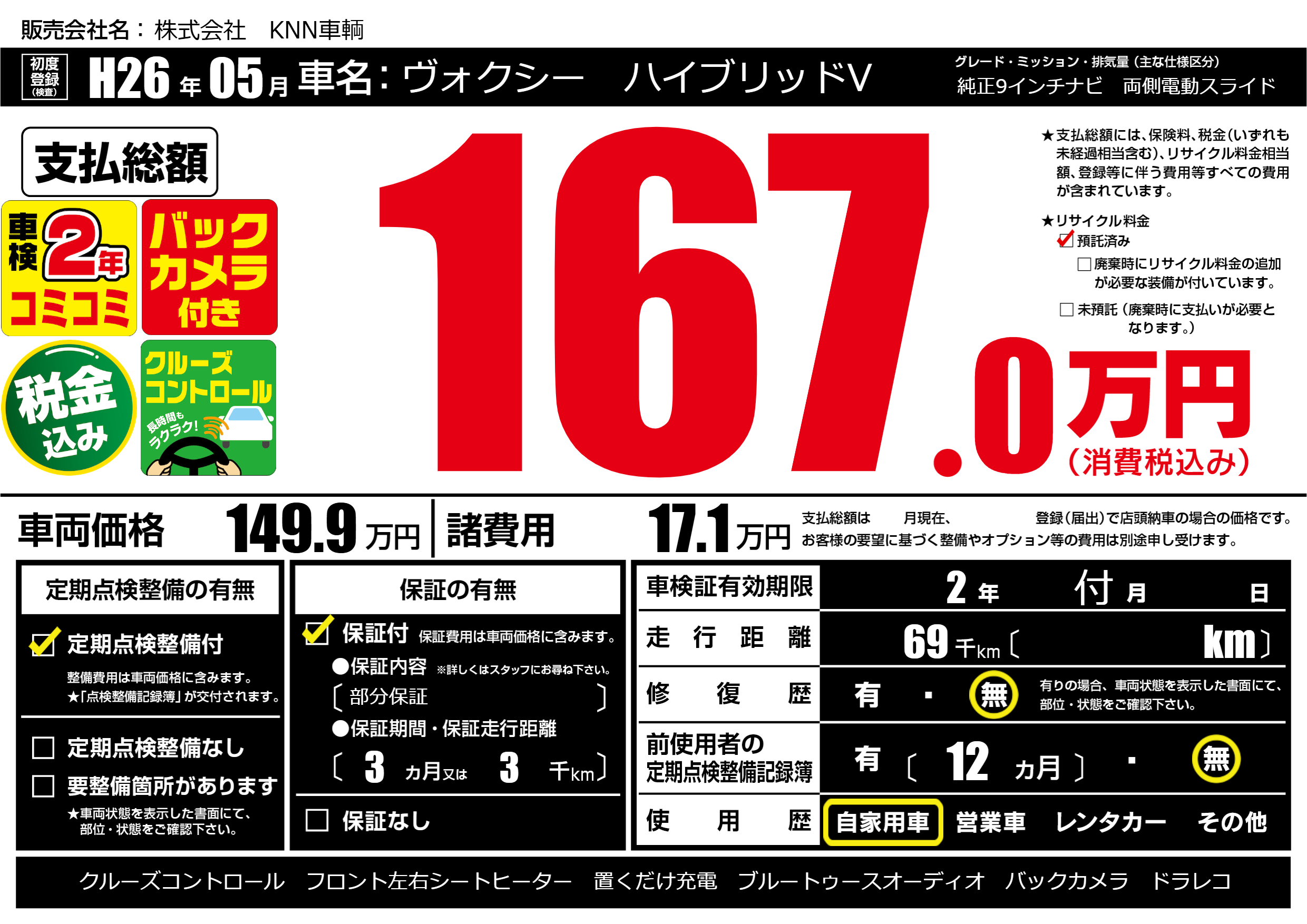 | 走行キロ | 6.9万km | 初年度登録 | H26年05月 |