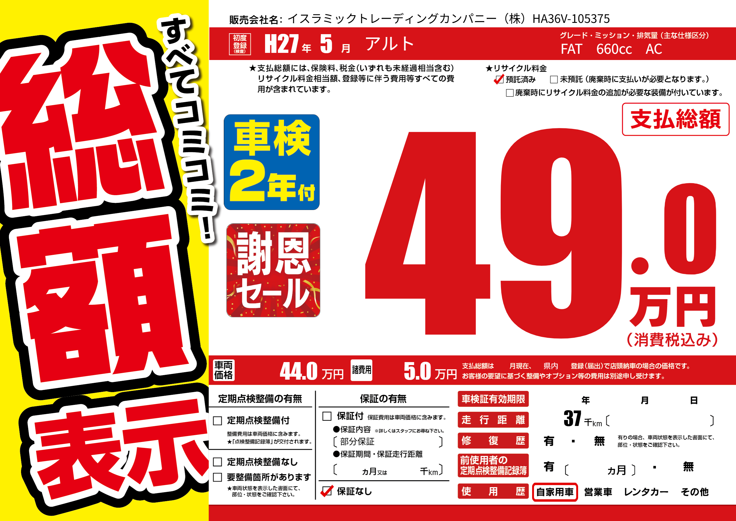 | 走行キロ | 3.7万km | ||