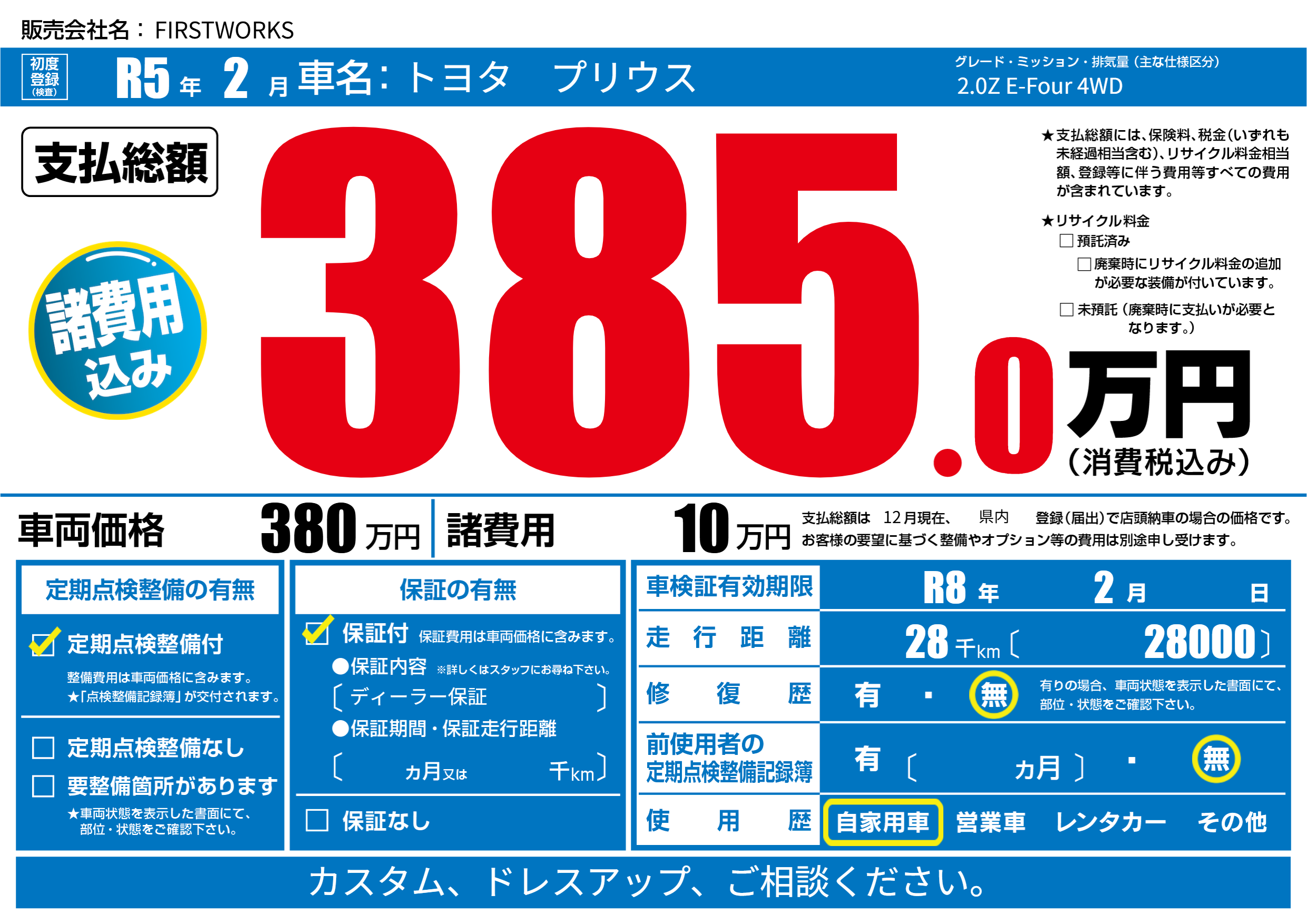 | 車検制限 | R8年 2月 - 日 | ||